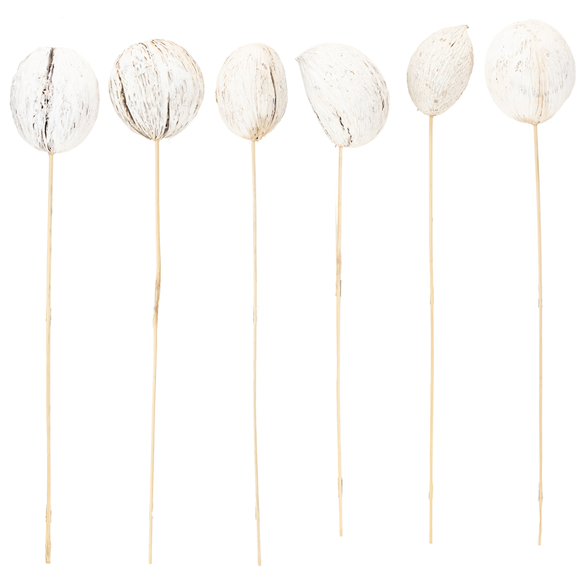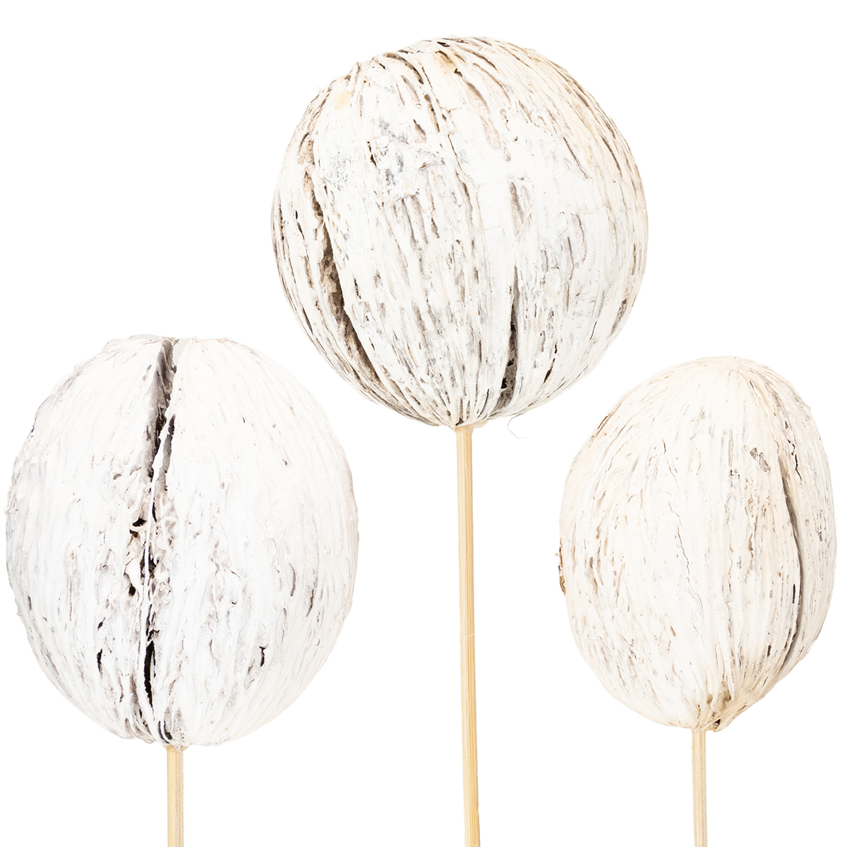 Ponieważ małe dekoracyjne kulki zostały przyklejone dość praktycznie na długich drewnianych łodygach, jeszcze łatwiej jest je dekoracyjnie wykorzystać: Umieść je w wazonie razem z innymi egzotycznymi materiałami naturalnymi, takimi jak Bull Cup, Cane Cone i Palmspear i stwórz w ten sposób wspaniałą dekorację stołu lub pokoju. Dodatkowo, drewniane kule można łatwo przymocować przez patyczki w ziemi lub piance, co znacznie ułatwia np. upiększenie doniczek w domu lub wkomponowanie ozdobnych owoców w aranżację pogrzebu. Można również usunąć łodygi i umieścić orzechy Mintolla w miseczce lub na suszonym liściu bananowca na komodzie lub parapecie. Oryginalny przyciągacz wzroku, który powstał w ten sposób, z pewnością przyciągnie wszystkie spojrzenia!