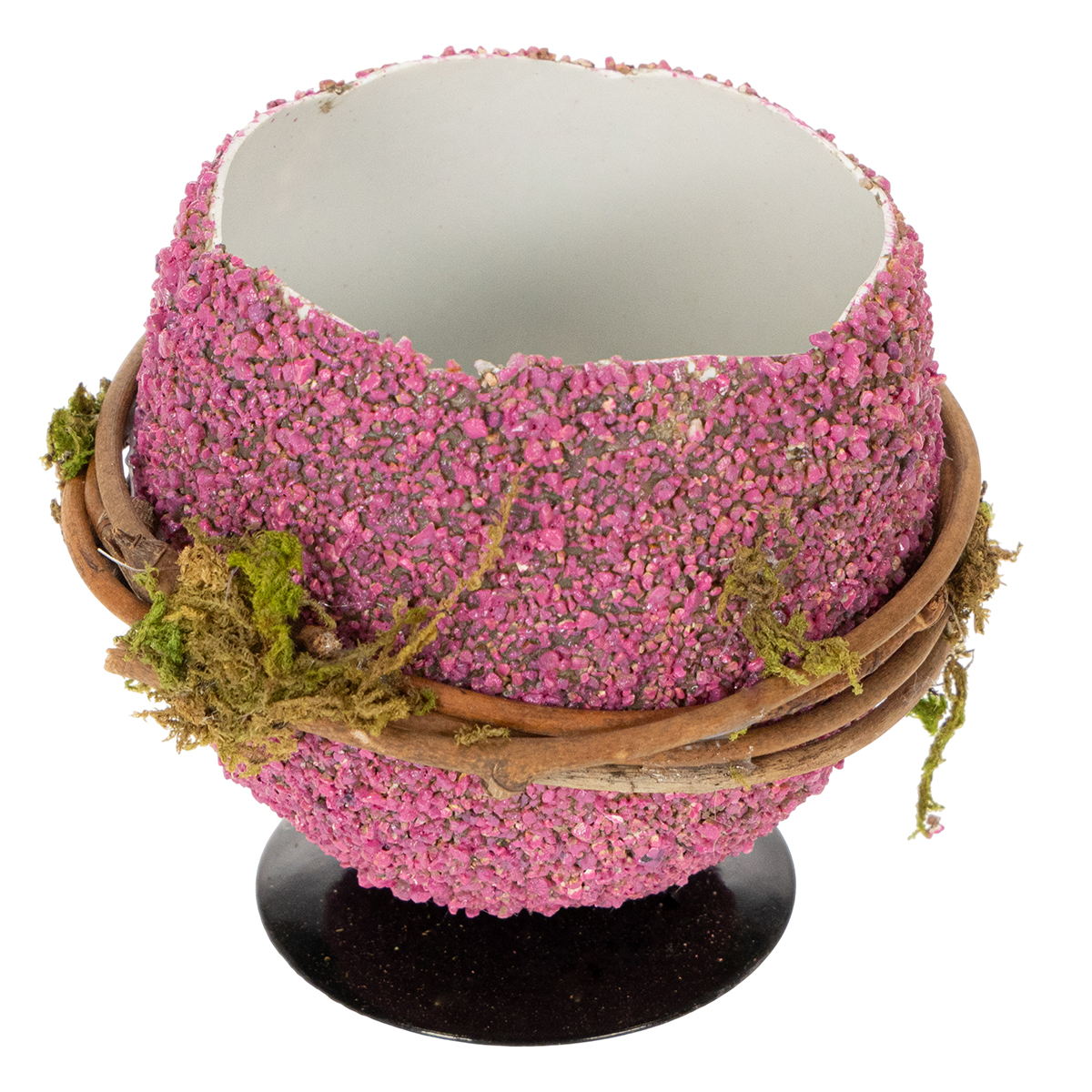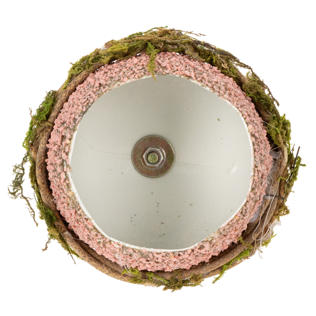 Różnorodne kolory: fioletowy, różowy, różowy i zielony dodają radosnego akcentu. Połączenie materiałów – plastiku, mchu i metalu – sprawia, że jajko przyciąga wzrok. Wianek z gałązek i mchu nadaje dekoracji wyjątkowo naturalny charakter. A co najważniejsze: możesz spersonalizować to jajko wielkanocne do sadzenia, umieszczając w nim małą doniczkę z sukulentem lub świeże, wiosenne kwiaty. Twoja kreatywność nie zna granic!