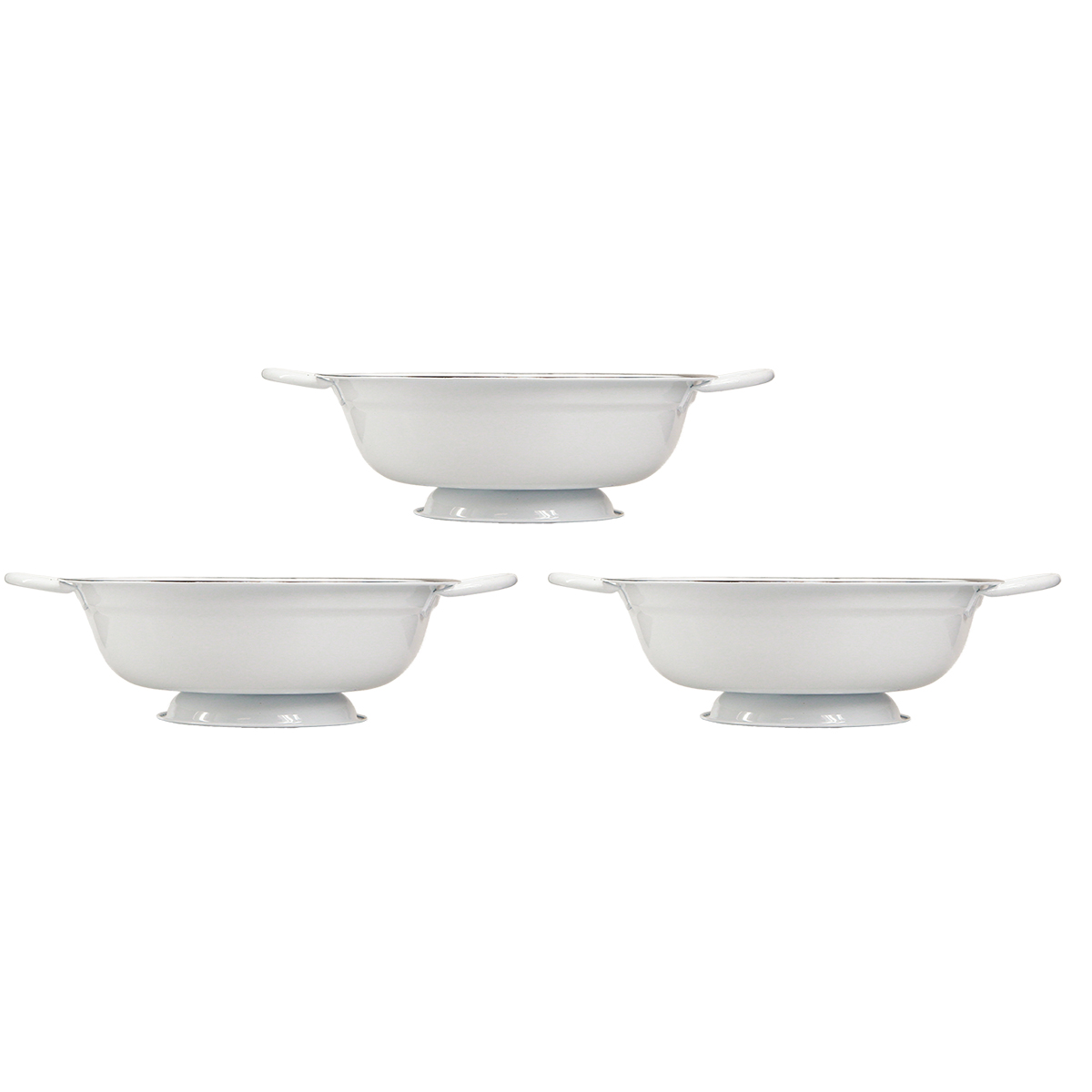 - Trzy metalowe miski w kolorze biało-czarnym, styl vintage