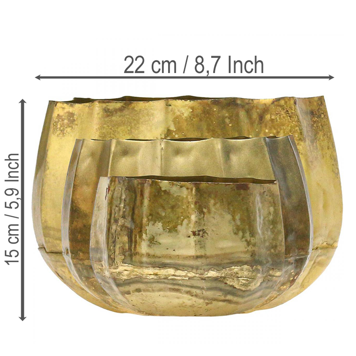 Zaprezentuj swoje kwiatowe dzieła sztuki w szczególnie elegancki sposób dzięki ozdobnej misce z mosiądzu. Mosiężne naczynia otrzymujesz w zestawie w trzech różnych rozmiarach.