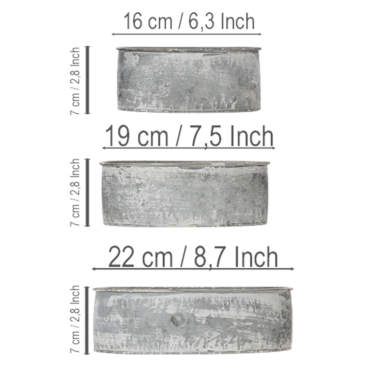 Miska metalowa dekoracyjna owalna, szara, dł. 22,5/19,5/16 cm, zestaw 3 szt.