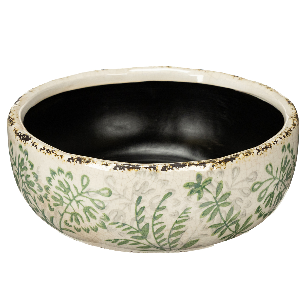 Ta ręcznie wykonana ceramiczna miska urzeka delikatnym wzornictwem i pieczołowicie wykonanymi detalami. Średnica 20 centymetrów, lekko podwyższony brzeg (7 centymetrów) i elegancka, biało-zielona kolorystyka sprawiają, że misa przyciąga wzrok w każdym pomieszczeniu. Niezależnie od tego, czy będzie prezentowana samodzielnie, czy w połączeniu z innymi rustykalnymi dodatkami, miska wniesie odrobinę natury do Twojego domu i zdobędzie uznanie za swoją wszechstronność.