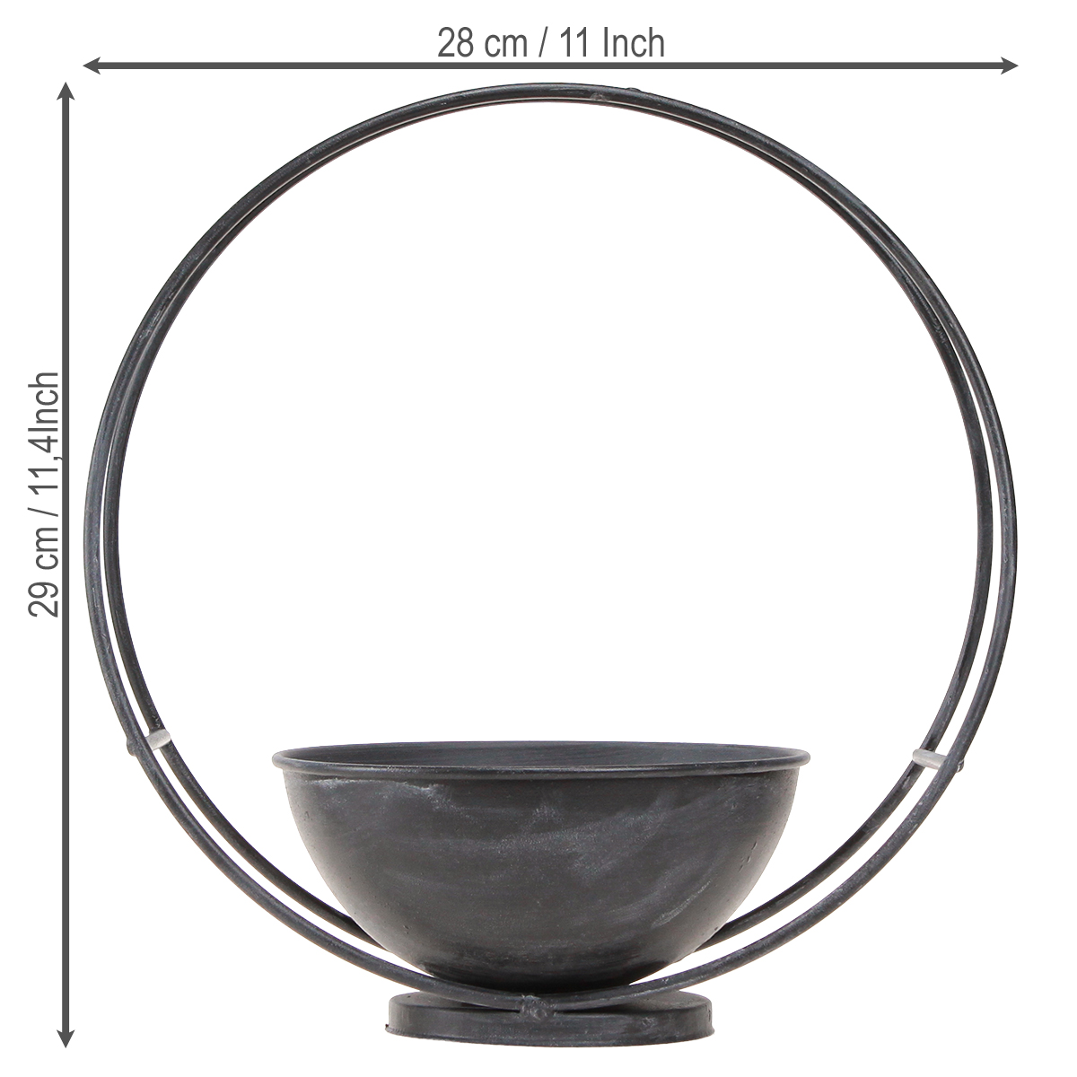 Miska z nóżką, pierścień dekoracyjny, metal, antracyt, wys. 29 cm, 2 sztuki