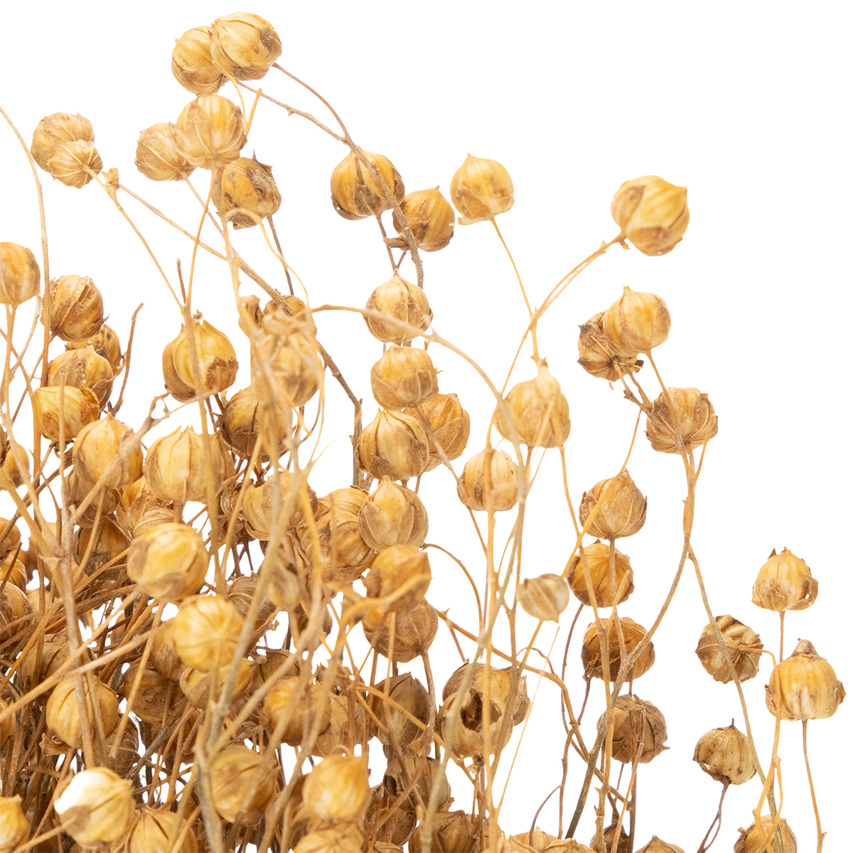 Liczne, małe, okrągłe torebki nasienne lnu są niezwykle dekoracyjne w stanie naturalnym, dzięki czemu len jest popularnym elementem dekoracyjnym w kompozycjach z suszonych kwiatów przez cały rok! Suszony len jest niezastąpiony w florystyce i można go na wiele sposobów wykorzystać w suszonych bukietach, naturalnych wieńcach i ozdobnych pierścionkach w popularnym stylu skandynawskim.