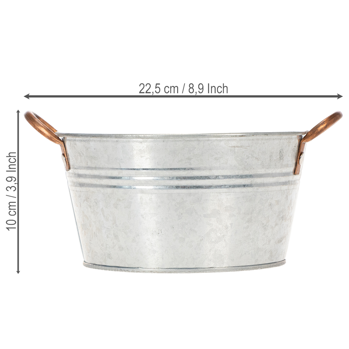 Chcesz pięknie posadzić pojemniki na wiosnę? Wzbogać swoją dekorację stylową, a zarazem praktyczną okrągłą misą kwiatową z uchwytami. Metalowe naczynie ze srebrnym cynkowaniem i ozdobnymi uchwytami w kolorze miedzi swoim niepowtarzalnym designem uzupełni każdą aranżację wnętrza i będzie przyciągać wzrok w Twoim domu lub ogrodzie.