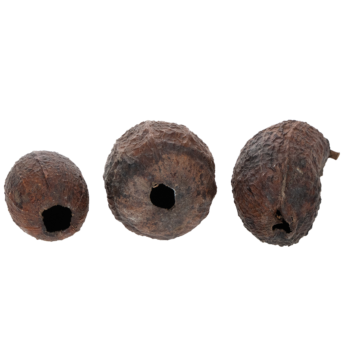 Któż nie zna i nie kocha kakaowca, owocu drzewa kakaowego, zwanego też po łacinie Theobroma cacao, z którego ziaren powstaje fantastyczna czekolada? Te ładne, naturalne owoce były nawet bardziej misternie obrabiane w celach dekoracyjnych niż do zbioru! Egzotyczne owoce drzew zostały więc po zebraniu starannie sfermentowane, wysuszone, a następnie wydrążone w dolnej części, dzięki czemu ziarna zostały wydobyte w specjalnym procesie.