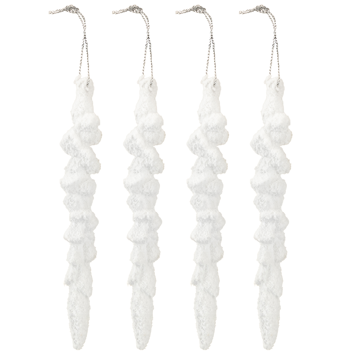 Ośnieżone ozdoby choinkowe w kształcie sopli – biała, zimowa magia w salonie