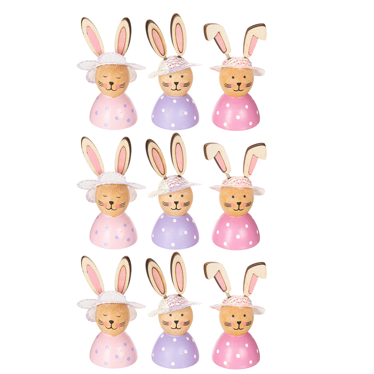 Ozdoba stołu wielkanocnego w kształcie zajączka na wiosnę, ozdobne zajączki z czapeczkami, 7cm, 9 szt.