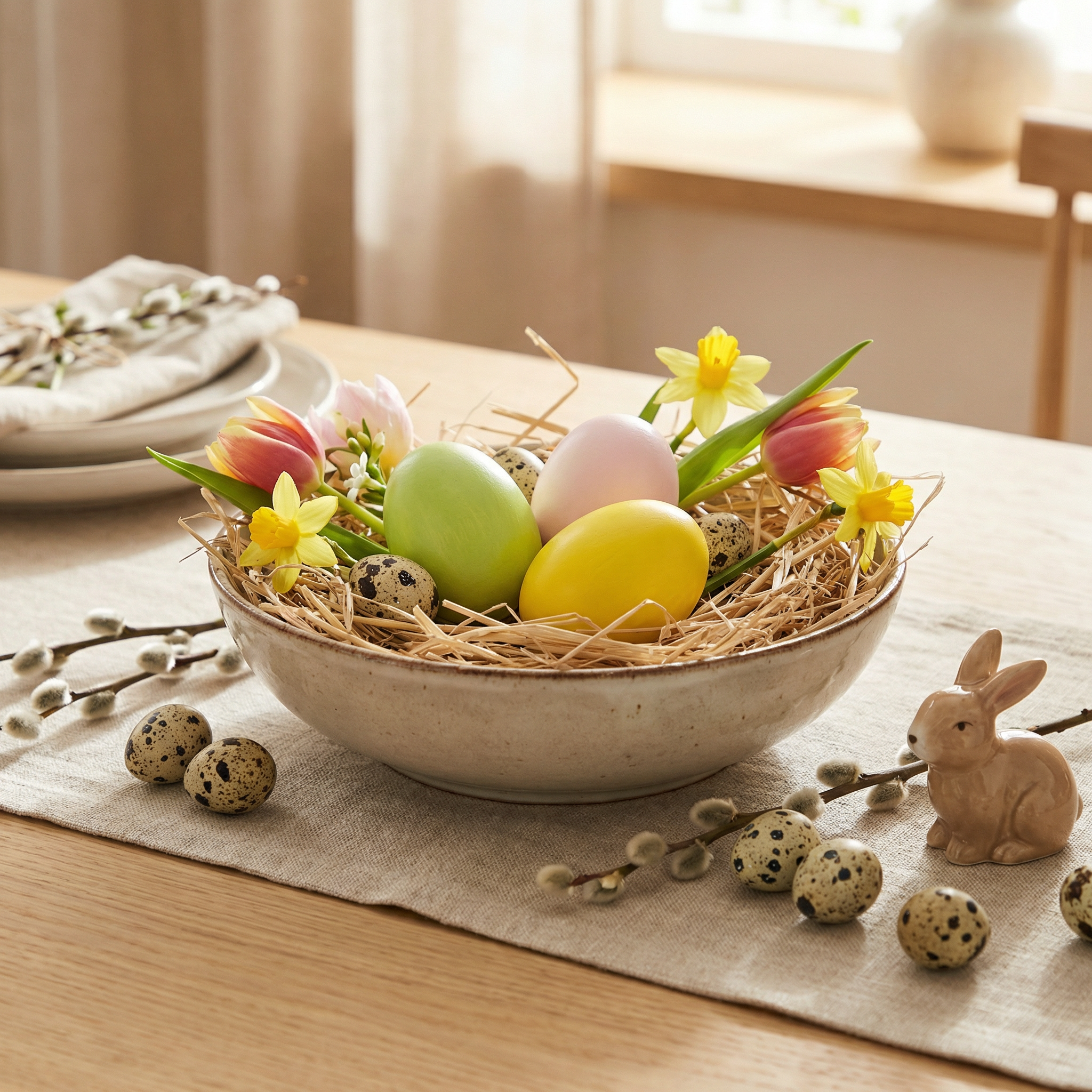 Połączenie naturalnych materiałów i świeżych kolorów sprawia, że ten zestaw ozdób wielkanocnych przyciąga wzrok. Niezależnie od tego, czy posłuży jako centralny element stołu w jadalni, dekoracja okna w połączeniu z wiosennymi gałązkami, czy też kreatywny projekt rękodzielniczy, te dekoracyjne gęsie jaja nadadzą każdemu wnętrzu przytulnej i harmonijnej atmosfery. Zestaw ozdób wielkanocnych z 10 wydmuszkami urozmaici Twoje pomysły dekoracyjne – czy to na wielkanocne spotkanie z rodziną i przyjaciółmi, czy jako całoroczna wiosenna dekoracja. Delikatne pastelowe odcienie żółci, zieleni i różu z łatwością wkomponują się w różne style, takie jak styl rustykalny czy nowoczesny skandynawski. Skorupki prawdziwych gęsich jaj są czyszczone i barwione, dzięki czemu idealnie nadają się również do zadaszonych przestrzeni na zewnątrz.