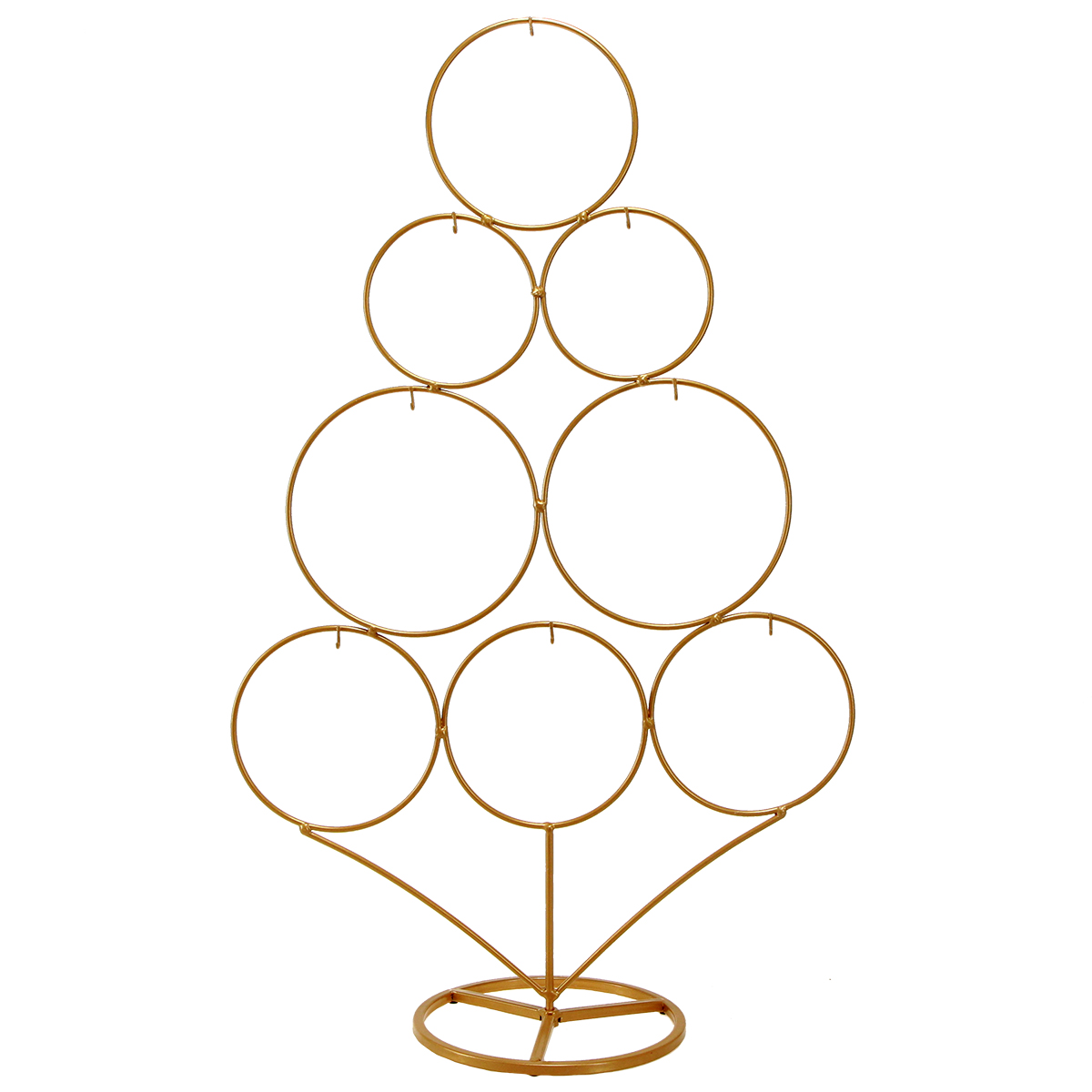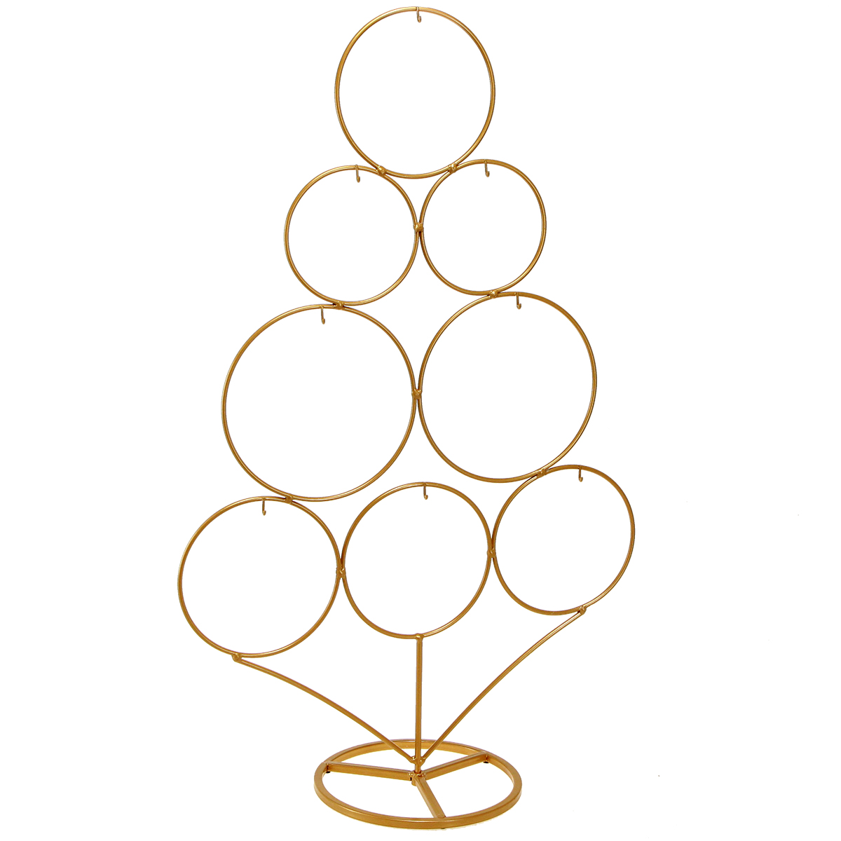 Metalowa choinka z ozdobnymi haczykami: minimalistyczna elegancja w kolorze matowego złota
