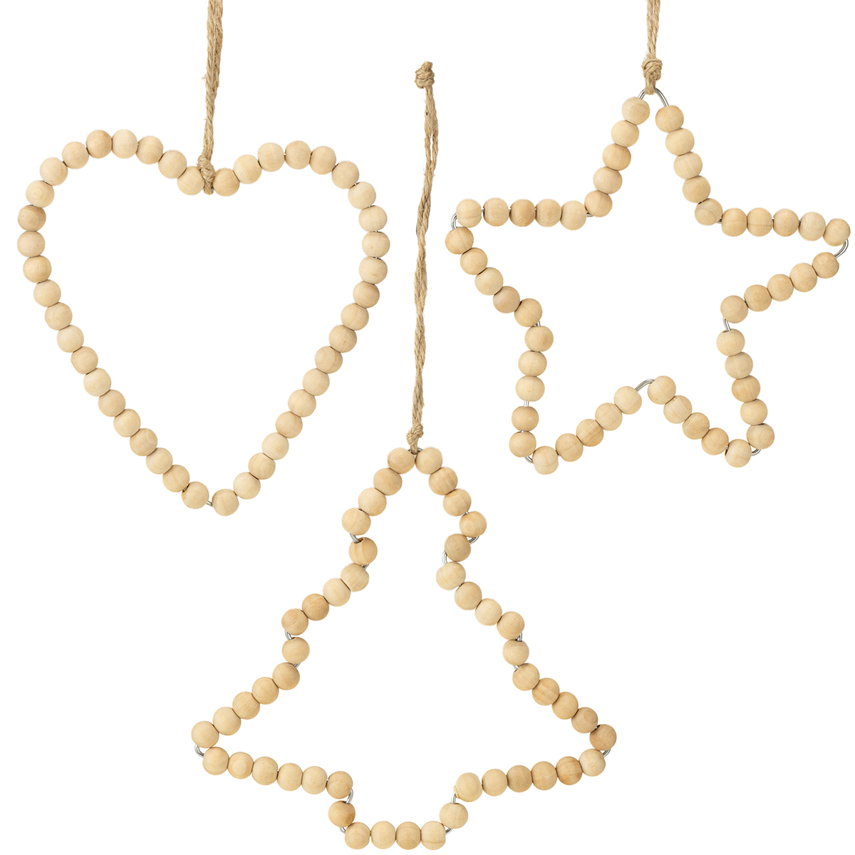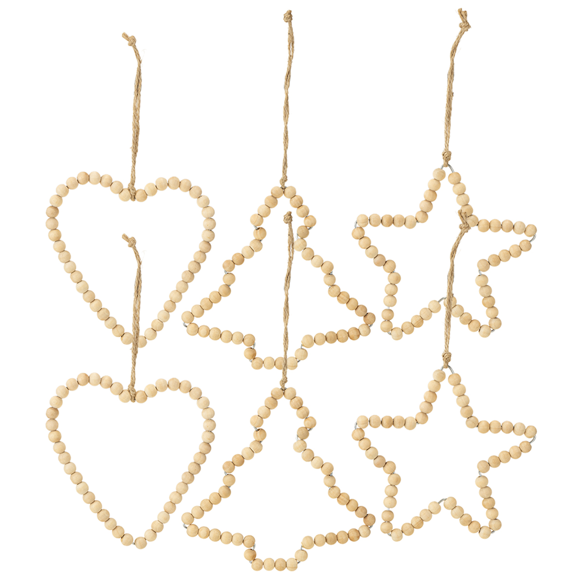 Nazwa produktu: Ozdoby świąteczne: drewniane koraliki, serce, gwiazda, choinka, wysokość 13 cm, 6 sztuk