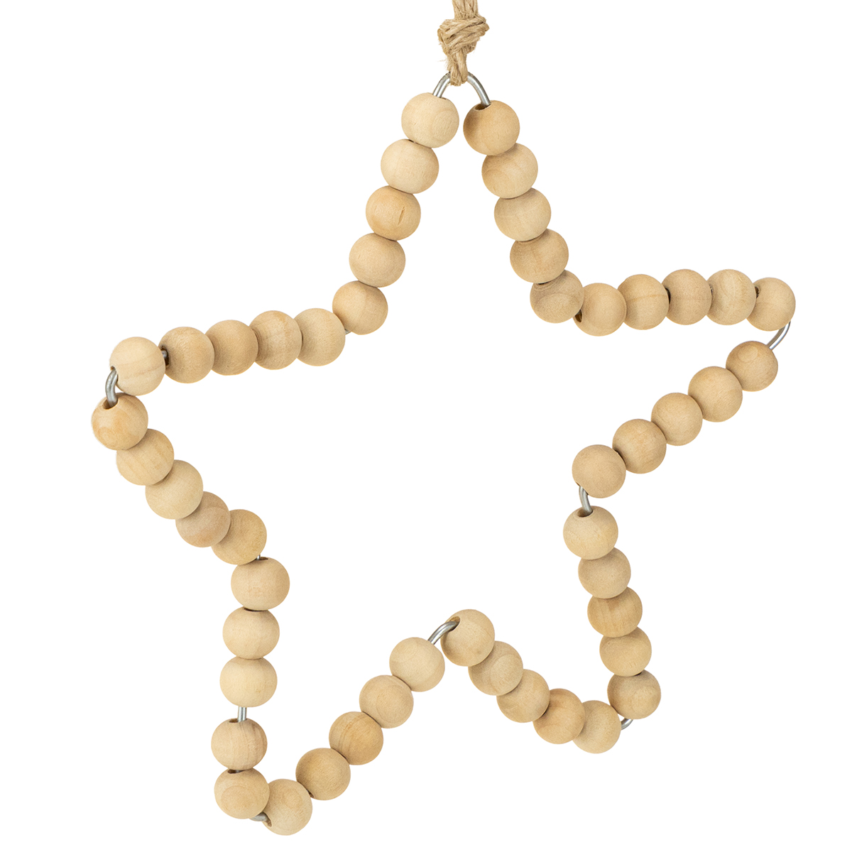 A sześć ozdobnych wieszaków ozdobionych drewnianymi koralikami można przymocować do choinki jako ozdoby choinkowe. Zawieszki świąteczne można również wykorzystać jako dekoracje wiszące lub jako dekoracje świąteczne na okno. Piękne okrągłe drewniane koraliki sprawiają, że dekoracyjny wieszak wygląda równie dobrze ze wszystkich stron.