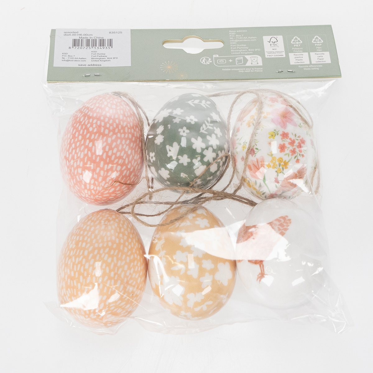 Nazwa produktu: Ozdoby w kształcie jajek wielkanocnych jako pomysł na ozdobę. Urocze ozdoby wielkanocne, 6 cm, 6 sztuk.