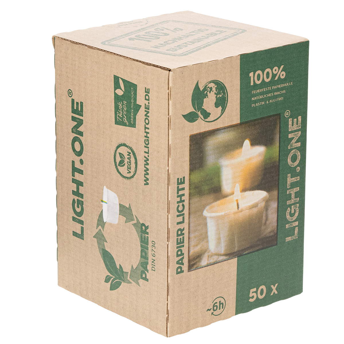 Czy jest coś piękniejszego niż delikatny blask tealighta, wypełniający pomieszczenie ciepłą, przyjazną atmosferą? Niezależnie od tego, czy chodzi o romantyczne kolacje, relaksujące kąpiele, czy też świąteczne dekoracje stołu, tealight Light.One w papierowej kopercie doda wyjątkowego charakteru każdej okazji. Mierzący około 4 cm, idealnie wpasuje się w każdy wystrój. Estetycznie zapakowany w 100% ognioodporną papierową kopertę, ten mały, ale wykwintny tealight doda Twojemu stołowi ekologicznego akcentu. A co najważniejsze: nie zawiera plastiku ani aluminium! Ten tealight ucieleśnia naturalność i zrównoważony rozwój. Jego neutralne pod względem emisji CO₂ spalanie to krok w stronę bardziej ekologicznej przyszłości. Biały kolor i prosty design harmonijnie komponują się z różnymi stylami, od skandynawskiego, nowoczesnego po klasycznie elegancki. Pozwól swojej kreatywności płynąć, czy to przy tworzeniu uroczych dekoracji ślubnych, rozświetlonych przyjęć w ogrodzie, czy medytacyjnego odosobnienia. Te tealighty wnoszą ciepło i światło do Twojego codziennego życia.