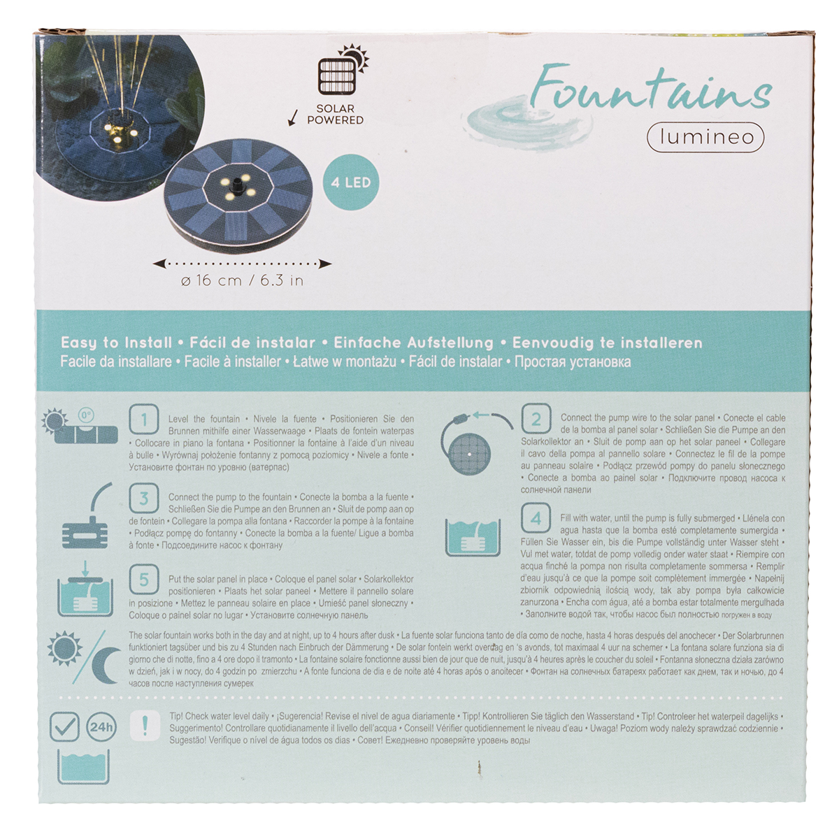 Wystarczy ją podłączyć, cieszyć się cudownie ciepłym, białym oświetleniem LED i gotowe! Dzięki eleganckiej, czarnej obudowie pompa solarna idealnie wpasowuje się w każdy styl ogrodu – zarówno nowoczesny minimalizm, jak i bardziej tradycyjne otoczenie. Zrób wrażenie na gościach podczas przyjęć w ogrodzie lub stwórz własną, spokojną oazę relaksu. Dzięki średnicy 16 cm pompa solarna jest kompaktowa, a jednocześnie przyciąga wzrok – nawet w nocy.