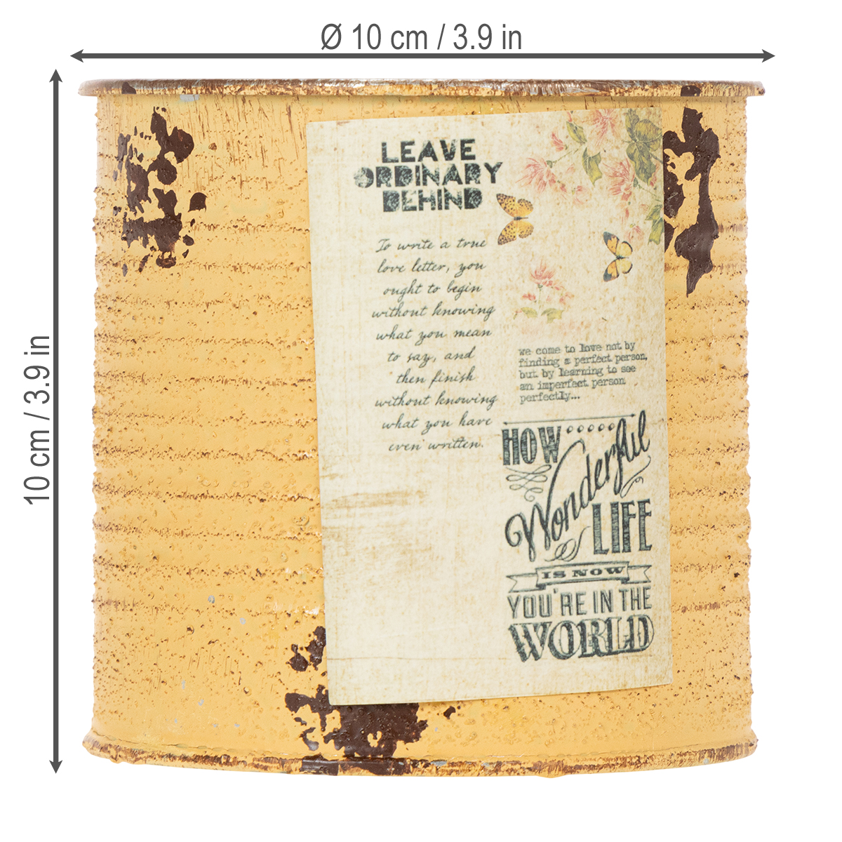 Puszka jako dekoracyjna puszka w moreli to świetny trend na letnie rośliny! Klasycznie wykonana z metalu, doniczka nadal ma od wewnątrz jasnosrebrny kolor puszki. Zewnętrzna strona donicy pomalowana jest na dwa kolory w kolorze rdzawym i pomarańczowym i dodatkowo ozdobiona sztucznymi plamami rdzy. Marzycielska, nostalgiczna etykieta dopełnia dekorację w stylu vintage małej metalowej doniczki. Oczywiście metalowa doniczka ma gładkie krawędzie zamiast ostrych krawędzi swojego wzoru do naśladowania. Możesz więc z łatwością wykorzystać blaszaną dekorację do rękodzieła z dziećmi i ogrodnikami.