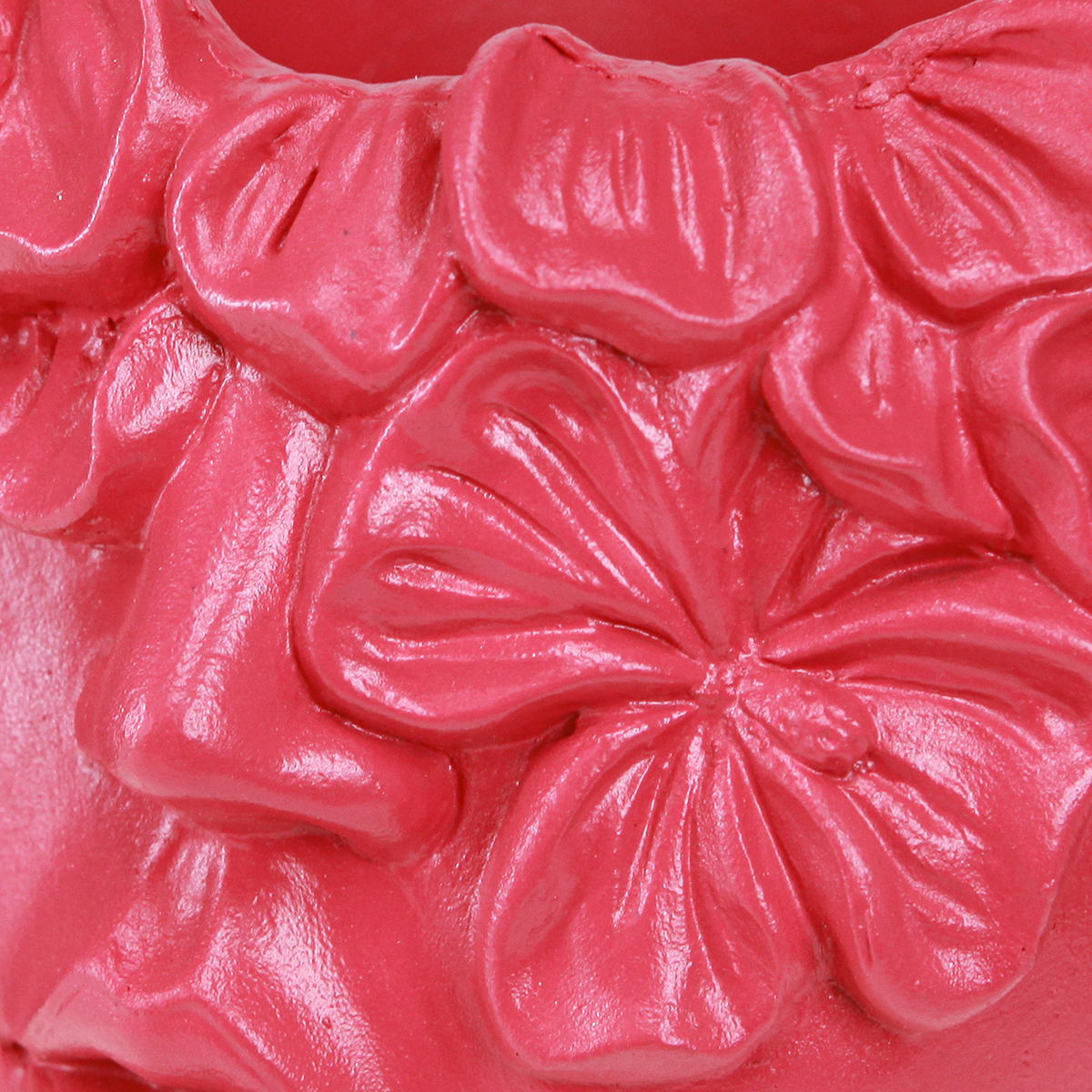 W języku kwiatów intensywny różowy kolor główki rośliny symbolizuje wesołość, młodość i energię. Ten odcień ożywi każde pomieszczenie, a także będzie źródłem radości i kreatywności. Materiał, z którego wykonano doniczkę, to poliresin, który zapewnia jej trwałą i łatwą w pielęgnacji fakturę, co jest idealne dla dekoratorów i miłośników rękodzieła, którzy poszukują uniwersalnych, a jednocześnie trwałych ozdób. Kolor różowy można łączyć z delikatnymi pastelowymi odcieniami lub kontrastującymi kolorami, takimi jak zieleń czy biel, aby podkreślić pożądaną atmosferę.
