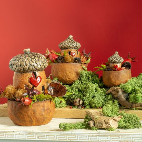 Domek ceramiczny żołędzie dekoracyjne żołędzie z motywem serca brązowy 6cm - jesienna dekoracja stołu - 6 szt