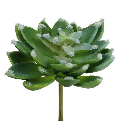 Stwórz wspaniałe i oryginalne dekoracje stołu z tą sztuczną różą skalną w kolorze zielonym, która należy do sukulentów! Sztuczna roślina składa się z wielu liści różnej wielkości, które są dość mięsiste i wyglądają jak małe łyżeczki. Są one również pokryte delikatną białą warstwą, a na ich końcach znajdują się małe, delikatne i białe włoski. W sumie sztuczny sukulent wygląda jak otwarty kwiat, który emanuje pewną egzotyką.Sztuczna róża jest przymocowana do łodygi, która jest zabarwiona na zielono-brązowo i posiada metalowy drut w rdzeniu. Jest to odpowiedzialne za stabilność i może być również nieco wygięte, dzięki czemu można wyrównać dekoracyjny kwiat. Masz możliwość umieszczenia sztucznego kaktusa na przykład z prętem w szklance, którą wcześniej wypełniłeś piaskiem lub kamieniami dekoracyjnymi. Ale także jako dodatkowa dekoracja w skrzynce na kwiaty, roślina ozdobna wygląda bardzo dekoracyjnie.