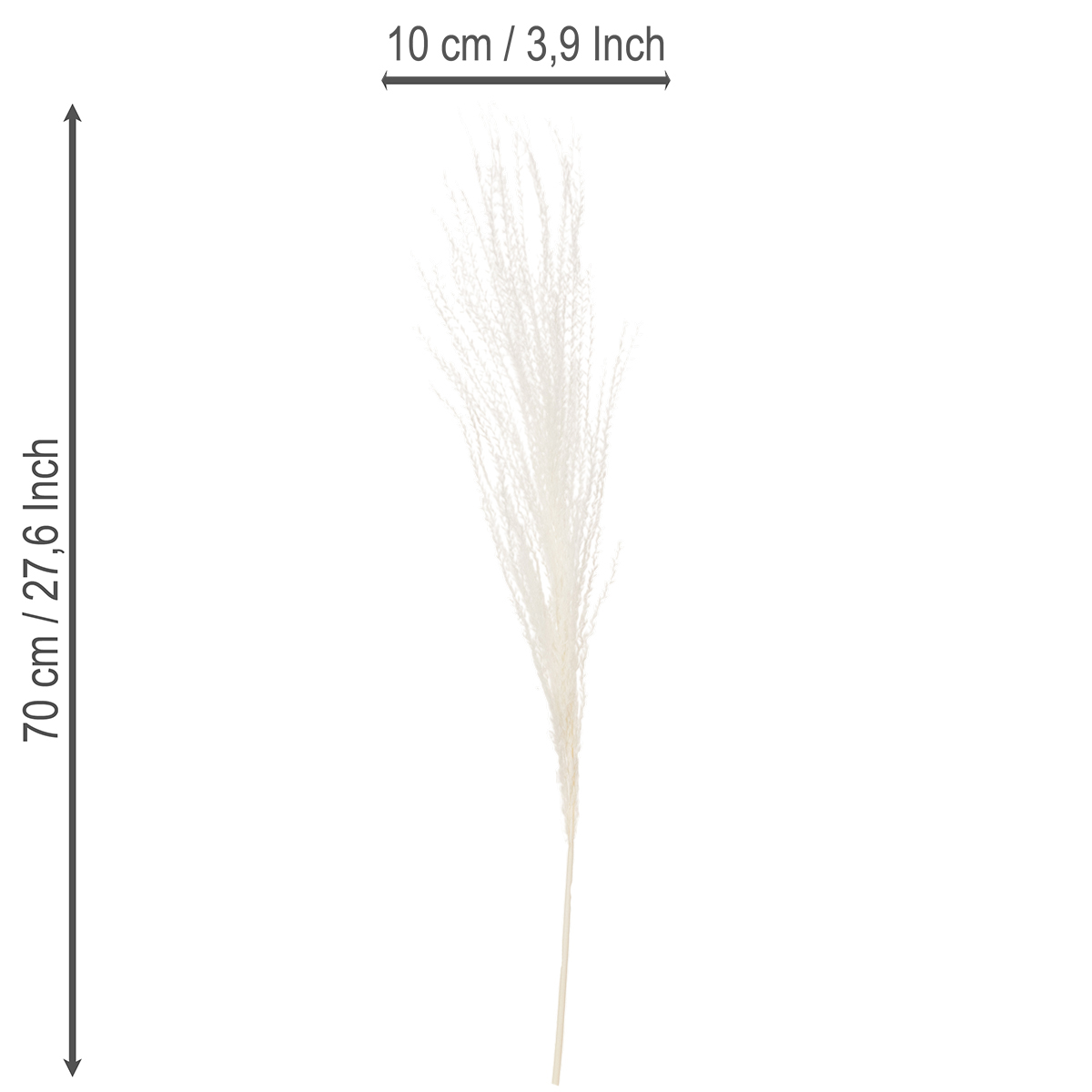 Nasza srebrzysta trawa to idealny wybór, jeśli szukasz naturalnej, wysokiej jakości dekoracji. Białe, 70-centymetrowe łodygi idealnie pasują do każdego wazonu i prezentują się niezwykle stylowo, zarówno pojedynczo, jak i w połączeniu z innymi suszonymi kwiatami. Czy to w salonie, jadalni, biurze, czy nawet na weselu, ta srebrzysta trawa tworzy relaksującą, harmonijną atmosferę. Idealnie wpasowuje się w nowoczesne, skandynawskie lub minimalistyczne wnętrza i dodaje przytulnego akcentu każdemu wnętrzu.
