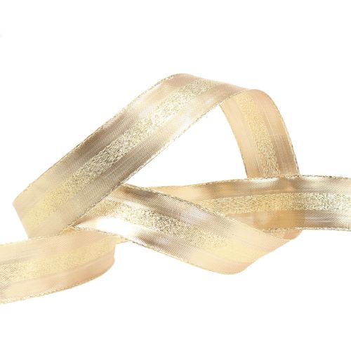 Wstążka świąteczna złota z drucikiem 25mm 20m