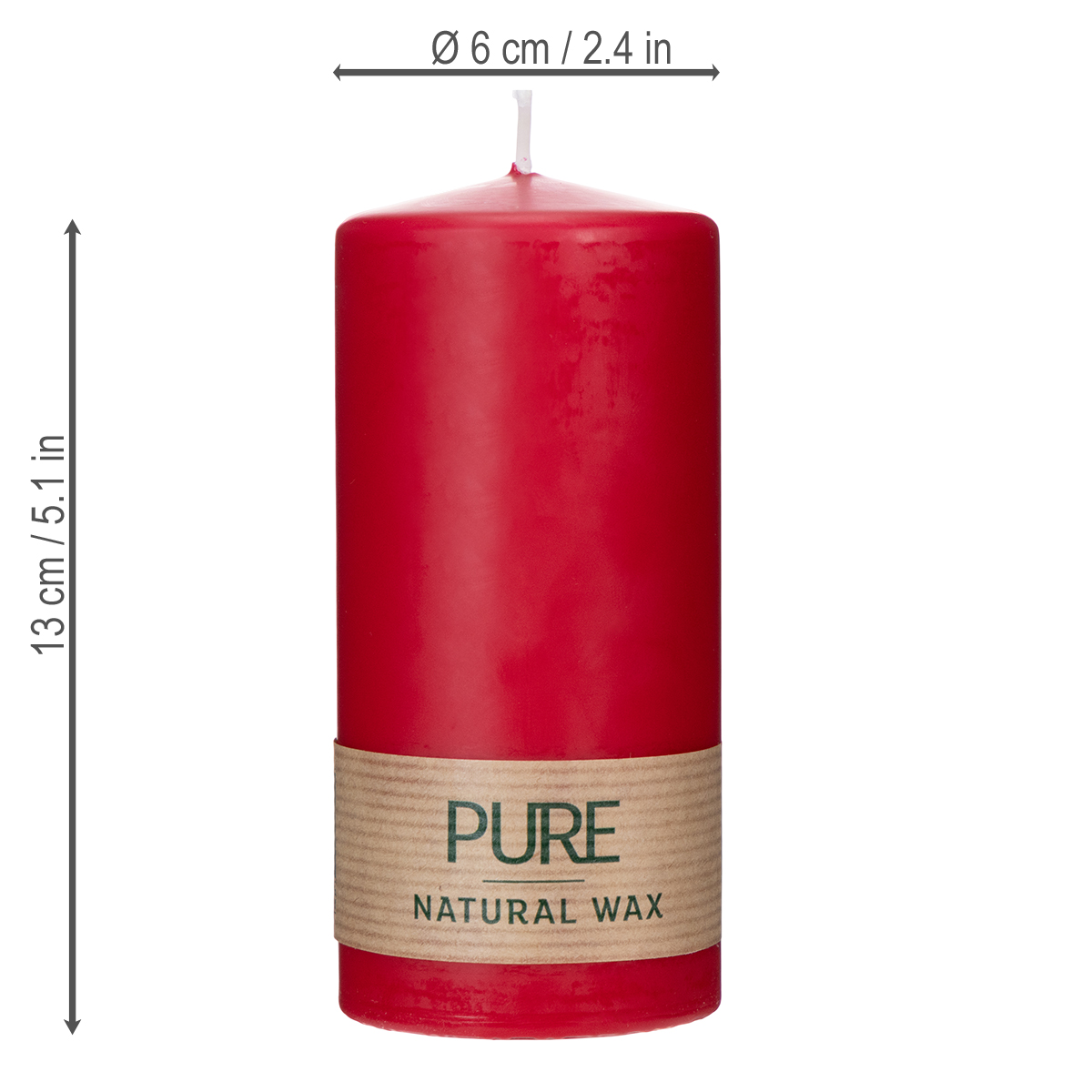 Świeca filarowa w kolorze czerwonym – świeca PURE z naturalnego wosku, która stworzy przytulną atmosferę