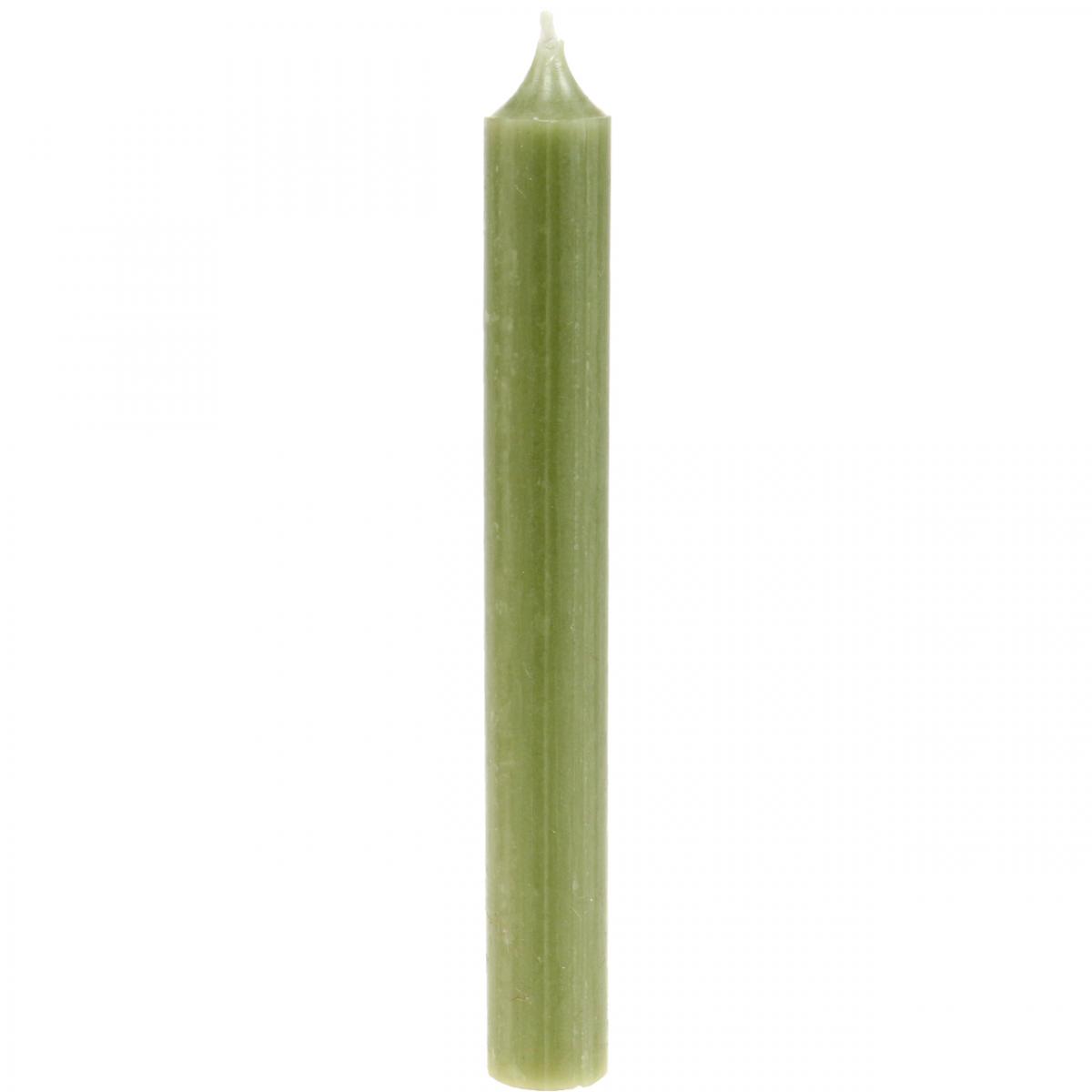 Świeczki w kształcie patyczków w kolorze zielonym rozświetlą i ubarwią Twoją dekorację stołu! Świece woskowe z ciągłym knotem mają czas palenia około 6 godzin i są barwione na całej powierzchni. Nieco rustykalna powierzchnia sprawia wrażenie, że świece Premium są lekko marmurkowe.