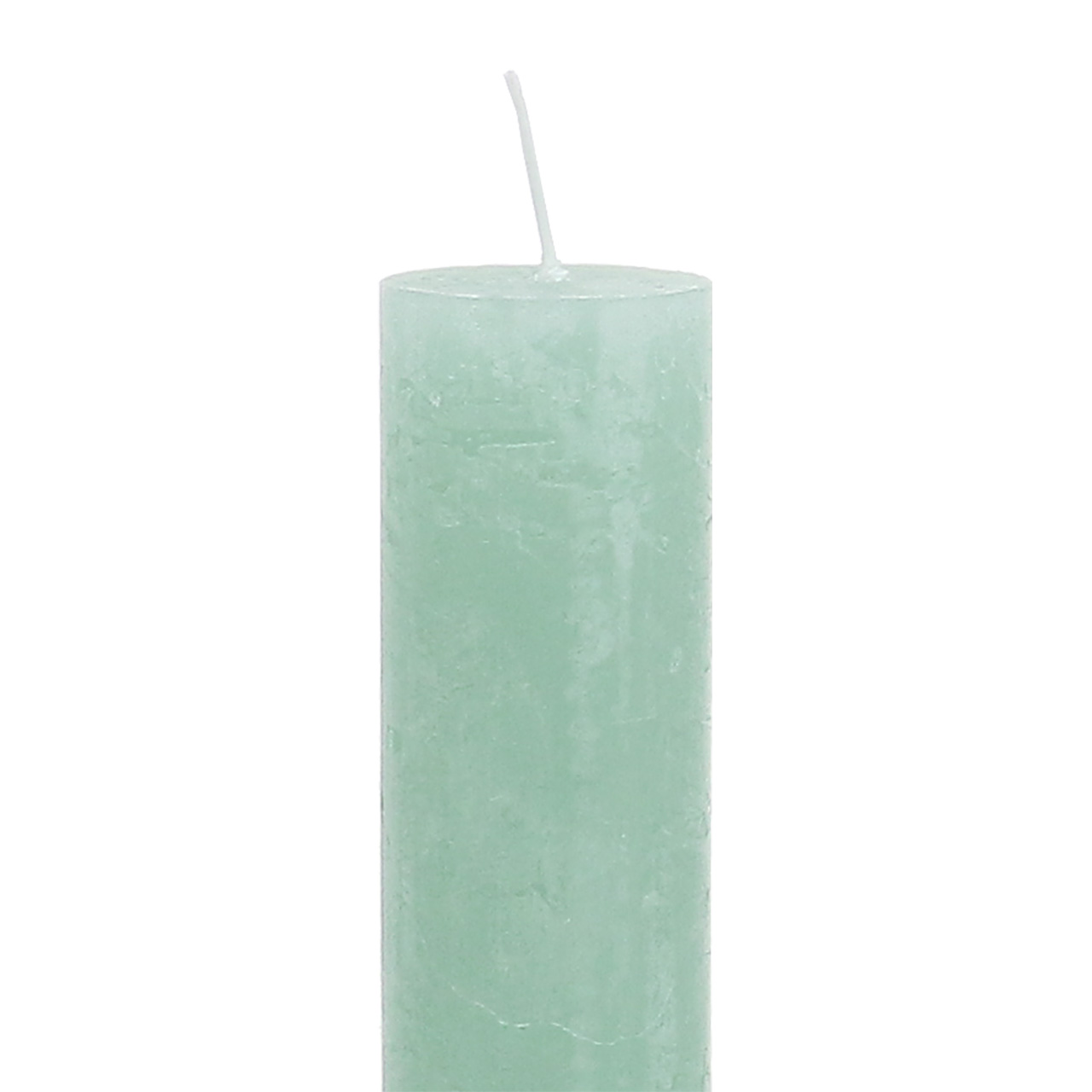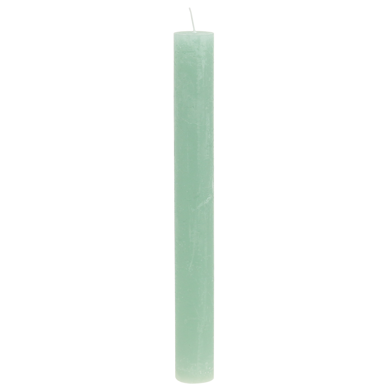 Solidne świece patyczkowe w kolorze jasnozielonym, które otrzymujesz w zestawie 4 sztuk w opakowaniu wykonanym z kartonu i plastiku, mają wysokość około 300 milimetrów i mierzą około 34 milimetrów średnicy. Czas palenia świec premium wynosi około 30 godzin.