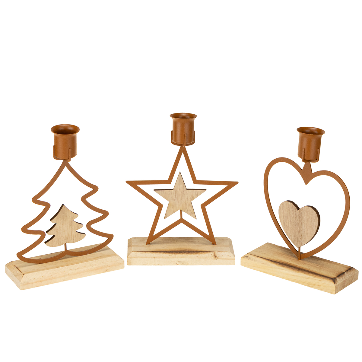 Nazwa produktu: Świeczniki gwiazda serce jodła brązowa W16,5cm mix 3szt