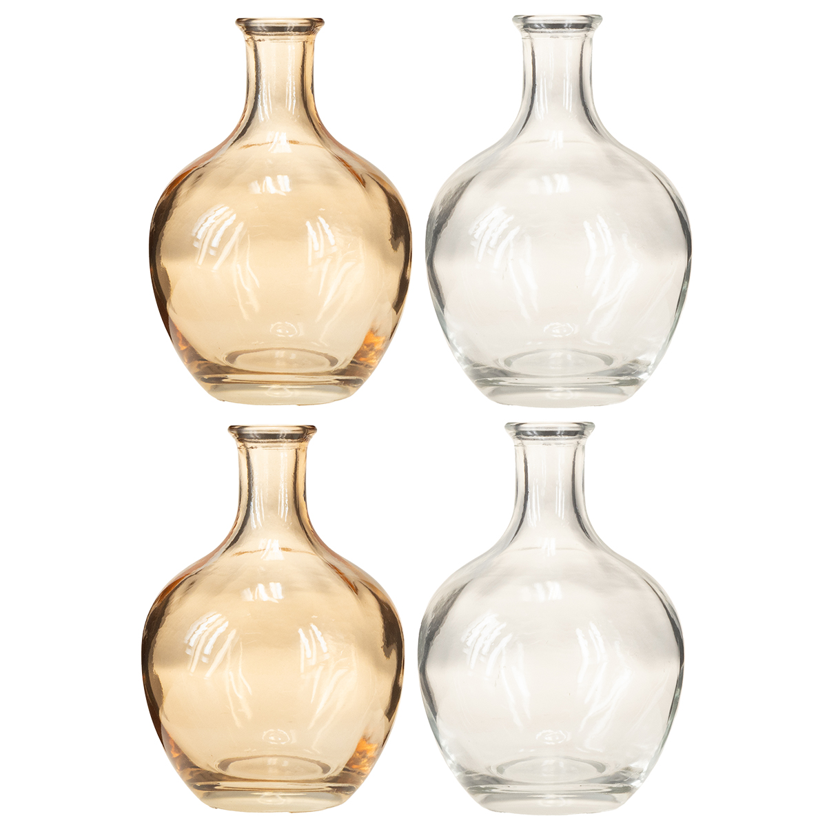 Szklana butelka mini wazonik bursztynowo-przezroczysty Ø7,5cm wys.11cm 4 szt.