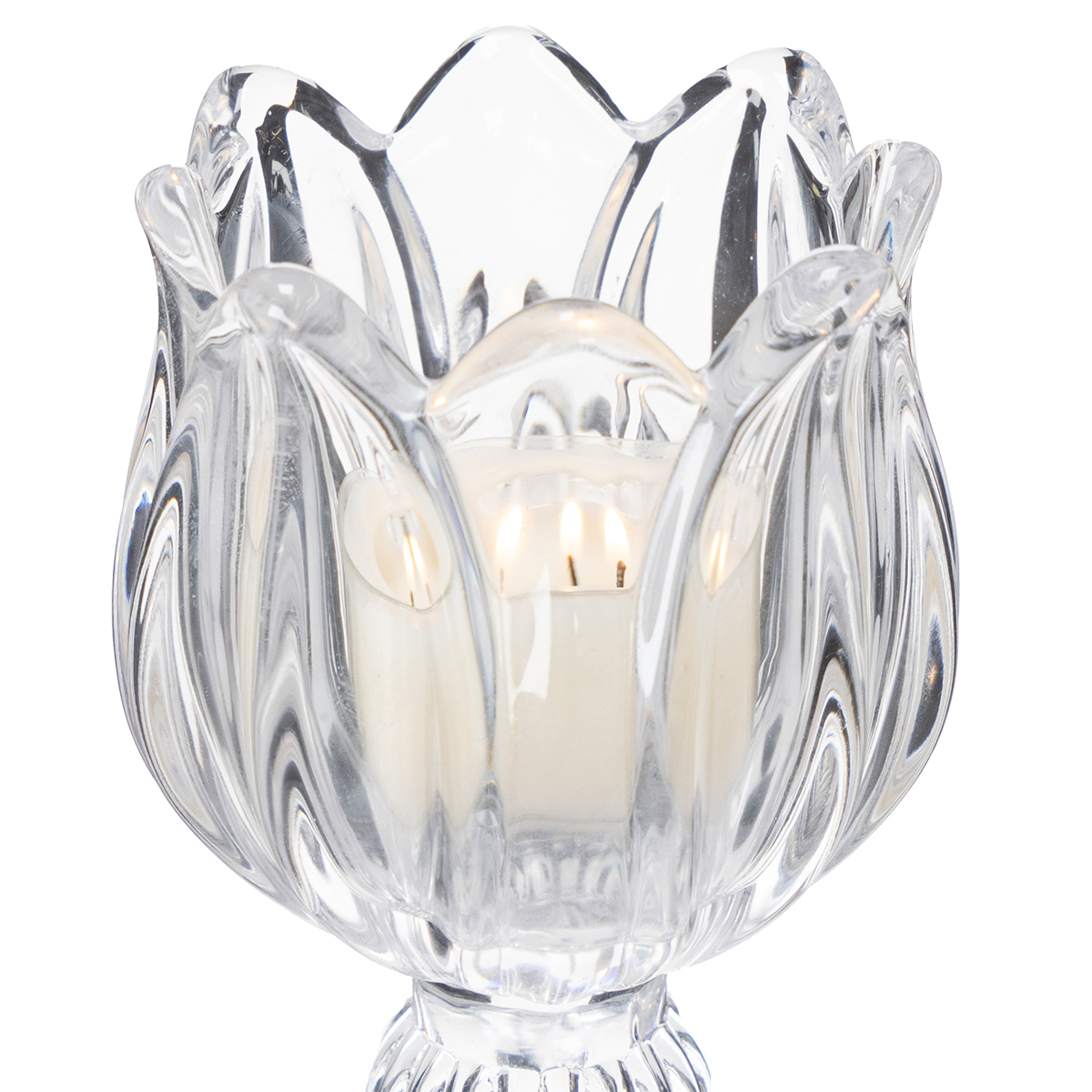 Szklany świecznik – dekoracja stołu – elegancja w formie kwiatowej