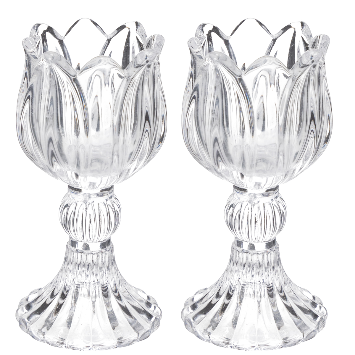 Szklane świeczniki z motywem kwiatowym do eleganckiej dekoracji stołu, 14 cm, 2 szt.