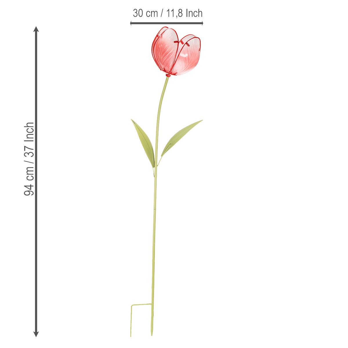 Szklany palik ogrodowy do tulipanów zachwyca nie tylko estetycznym wyglądem. Dzięki imponującym wymiarom – 94 cm wysokości i 13 cm średnicy – stanowi wyrazisty akcent w każdej przestrzeni ogrodowej. Żywoczerwony tulipan jest wykonany z wytrzymałego szkła, odpornego na warunki atmosferyczne i trwałego (choć nie mrozoodpornego).