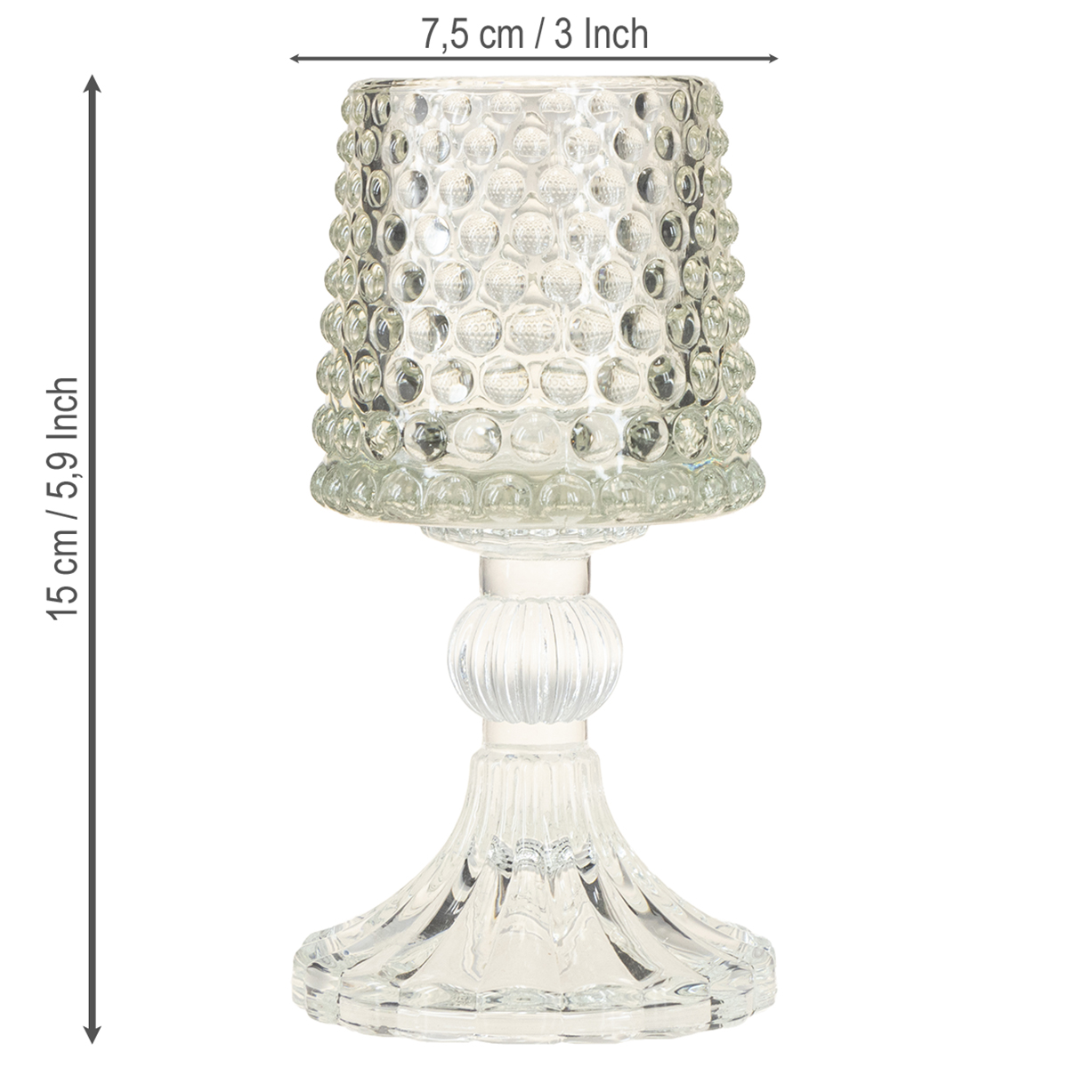 Nazwa produktu: Szklany świecznik na podgrzewacze z kropkami i rowkami w podstawie wys. 15 cm 2 szt.