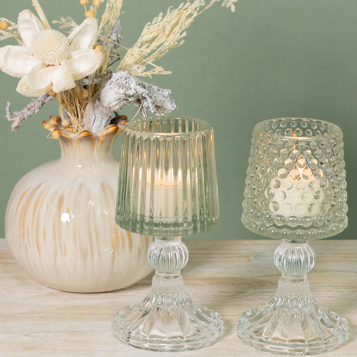 Szklany świecznik typu tealight z podstawą – stylowa elegancja dla Twojego domu