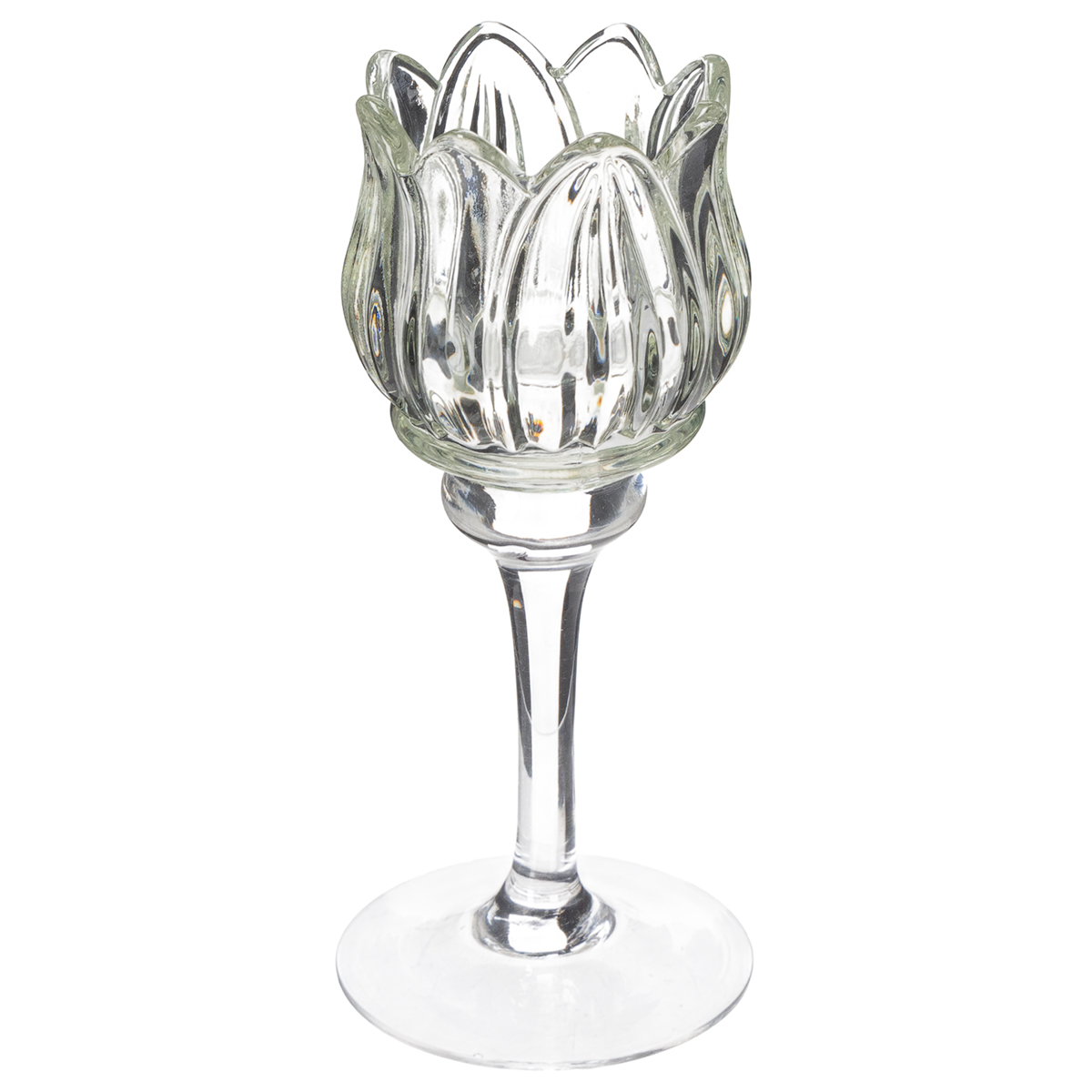 Szklany świecznik typu tealight, dekoracyjny w kształcie kwiatu, nadający stylowy nastrój, 17 cm