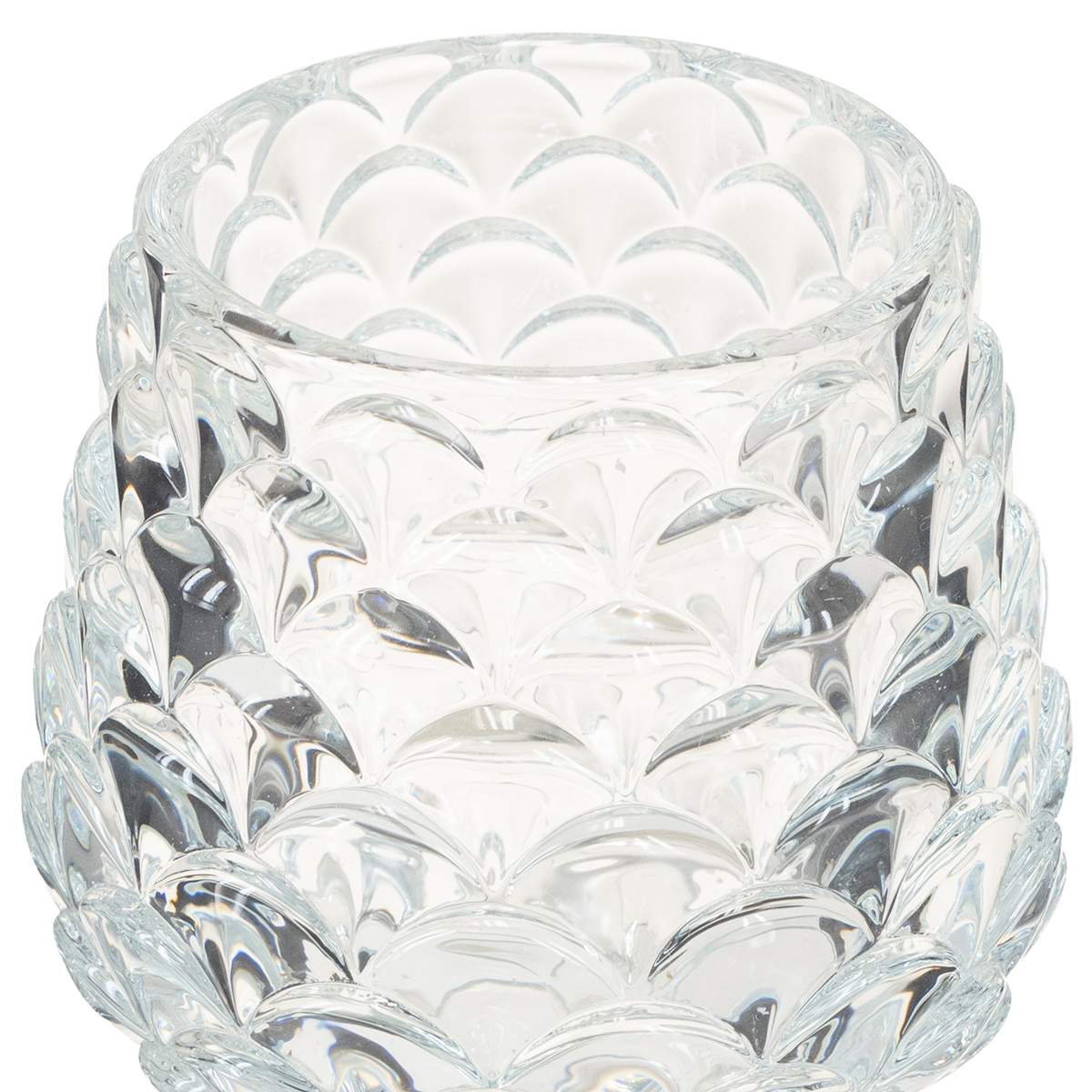 Czasami to drobne detale robią ogromną różnicę. Uwielbiasz tworzyć przytulną i zachęcającą atmosferę za pomocą światła i dekoracji? Pokochasz zatem „Szklane świeczniki na podgrzewacze z szyszkami i podstawą”! Ten zestaw, składający się z dwóch świeczników o różnej wysokości, zachwyca prostą elegancją i wyrafinowanym designem, który idealnie wpasowuje się w różnorodne style wnętrzarskie. Przezroczyste szklane listwy nawiązują do czarującej szyszki – są delikatne, stylowe i ponadczasowe. Niezależnie od tego, czy będą przyciągać wzrok w salonie, stanowić ozdobę świątecznego stołu, czy być romantycznym źródłem światła na przytulny wieczór: te świeczniki na podgrzewacze mają prawdziwy talent!