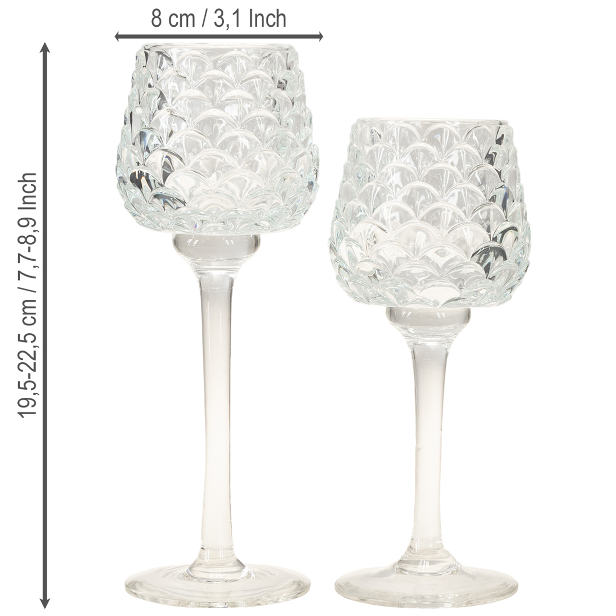 Szklany świecznik w kształcie stożka z podstawą wys. 19,5/22,5 cm, zestaw 2 szt.
