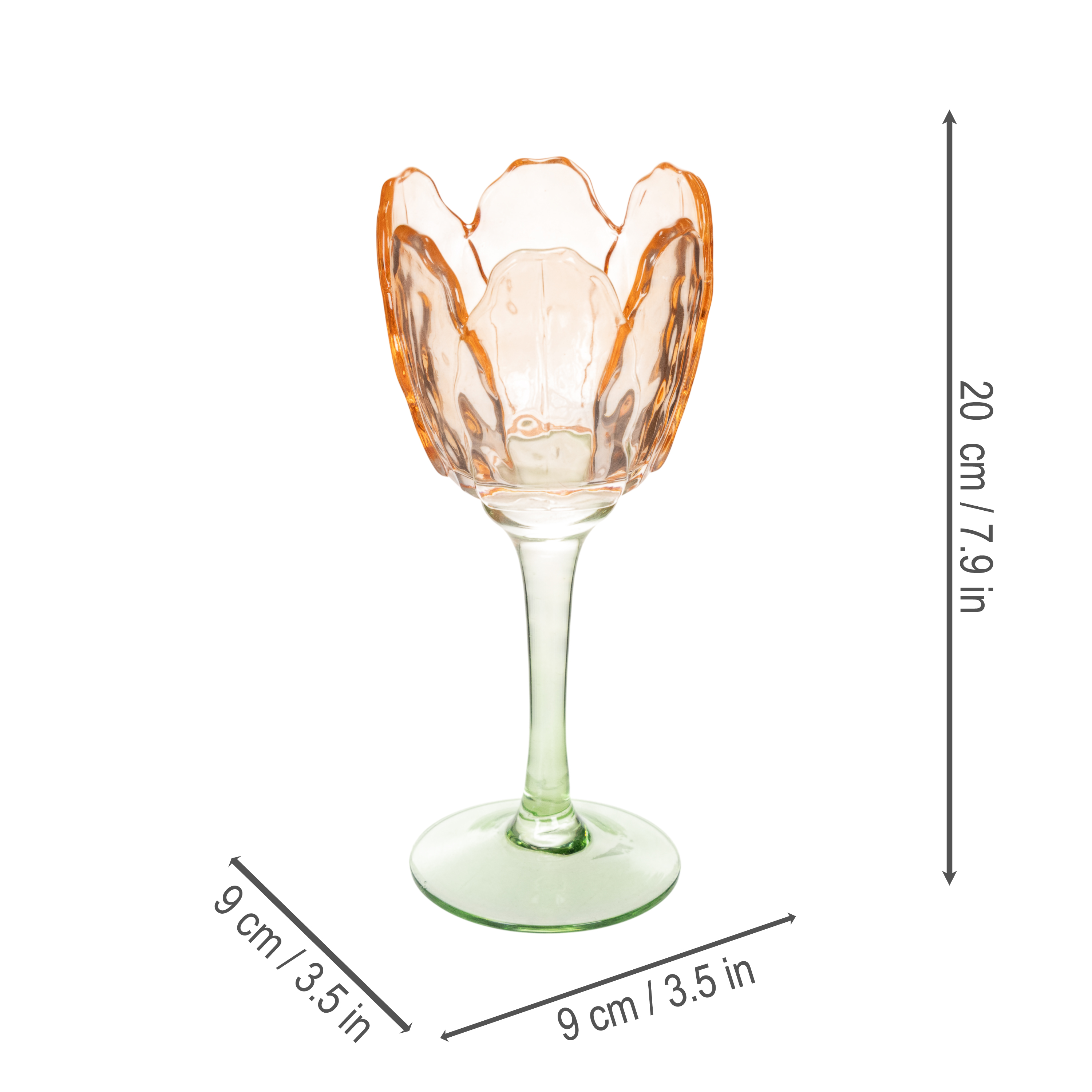 Ten szklany świecznik zachwyca pięknym kształtem i wszechstronnością. Otwór w kształcie kwiatu przywodzi na myśl delikatnie kwitnącego tulipana, idealnie zaprojektowany, by pomieścić ciepłe, zachęcające światło świecy. Mierzący 9 centymetrów długości, szerokości i średnicy oraz 20 centymetrów wysokości, świecznik idealnie wpasuje się w każde wnętrze, nie rzucając się w oczy. Delikatne, pomarańczowe odcienie szkła pięknie komponują się z różnymi stylami aranżacji wnętrz – od rustykalnego i shabby chic po nowoczesny i romantyczny.
