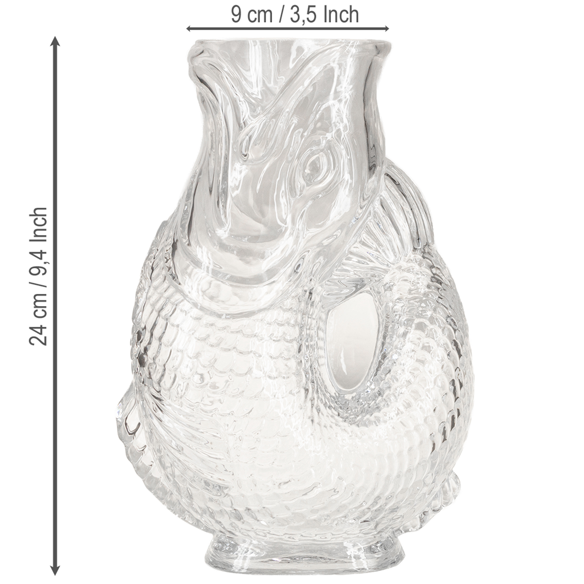 Szukasz wyjątkowego akcentu do swojego wnętrza? Ten szklany wazon z dekoracyjnym motywem ryby doda Twojemu domowi osobistego charakteru. Czy to na stole w jadalni, parapecie, czy w łazience, ten przezroczysty szklany wazon z uroczym motywem ryby dopełni różnorodne style aranżacji wnętrz. Jego delikatne wykonanie, przypominające lśniącą wodę, z pewnością zrobi wrażenie i nada każdemu wnętrzu nutę morskiego charakteru. Wysokość 24,5 cm sprawia, że jest on szczególnie wszechstronny i idealnie nadaje się do pojedynczych kwiatów, gałązek lub małych kompozycji kwiatowych. Dzięki subtelnej elegancji, ten wazon z pewnością przyciągnie wzrok.