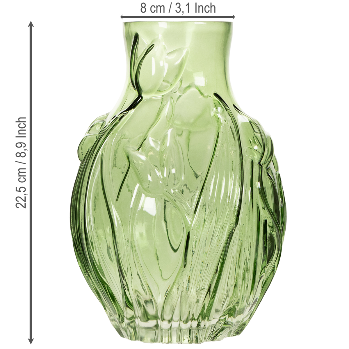 Co czyni go tak wyjątkowym? Delikatny wzór tulipana, elegancko wytłoczony w szkle, nadaje wazonowi nutę romantyzmu i nawiązania do natury. Jego wysokość 22,5 cm jest idealna – ani za wysoka, ani za kompaktowa. Idealna do stylowej ekspozycji świeżych tulipanów lub innych kwiatów. Uwielbiasz proste, eleganckie, a jednocześnie nietuzinkowe wzory? Ten wazon doda Twojemu wnętrzu wyjątkowego charakteru.