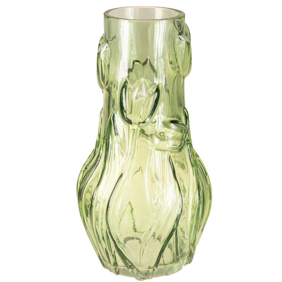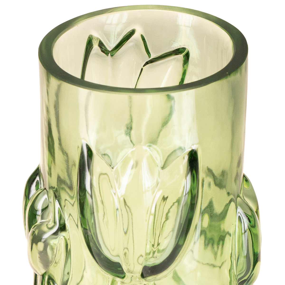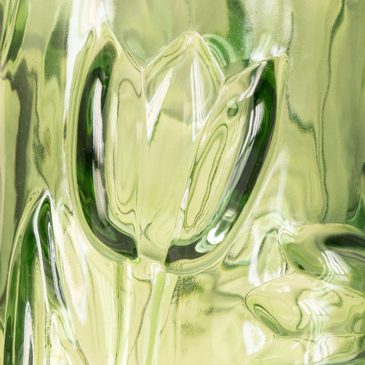 Szklany wazon z wytłoczonym wzorem tulipana, który doda harmonijnego charakteru wnętrzu, 30 cm