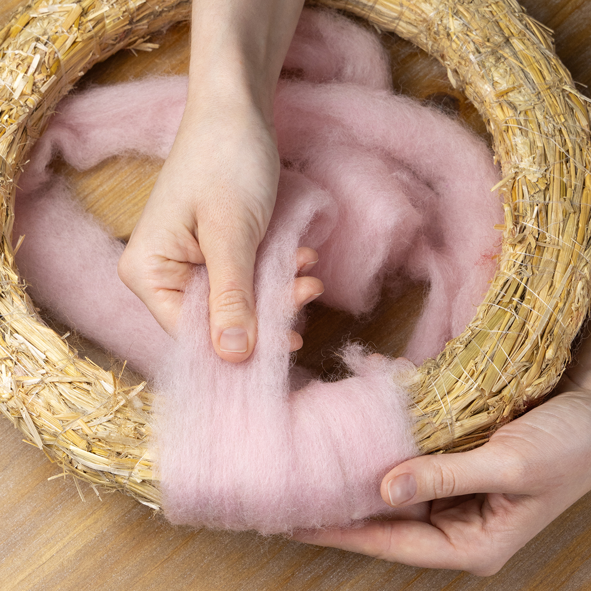 Aby uzyskać bardziej naturalny i rustykalny wygląd, filcowaną wełnę można również połączyć z suszonymi kwiatami lub drewnianymi misami. Idealnie nadaje się również jako baza do projektów DIY na wesela, chrzciny i inne wyjątkowe uroczystości. Dzięki solidnej jakości materiał pozostaje elastyczny i trwały, niezależnie od tego, czy tworzysz biżuterię, kompozycje kwiatowe, czy dekoracje sezonowe.