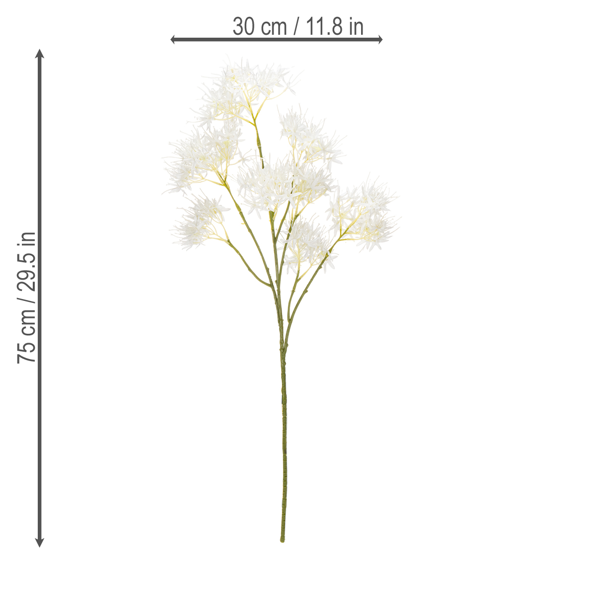 Uczyń tę gałązkę ozdobą swoich pokoi. Jej smukły kształt i żywy wygląd czynią ją wszechstronną. Połącz ją z innymi sztucznymi białymi kwiatami lub wykorzystaj jako samodzielną dekorację. Jej minimalistyczna elegancja zachwyca w wysokich wazonach. Pięknie komponuje się zarówno z nowoczesnym, jak i klasycznym stylem wnętrz. Niezależnie od tego, czy posłuży jako dekoracja na eventy, stworzy ciekawy akcent w biurze, czy połączy się z innymi gałązkami w hotelowych salonach – jej wszechstronne i zawsze efektowne zastosowanie!