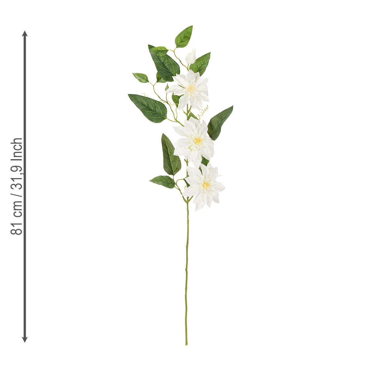 Uwielbiasz stylowo dekorować swoje wnętrza, ale preferujesz rozwiązania niewymagające dużej pielęgnacji? Nasza sztuczna gałązka powojnika jest właśnie tym, czego szukasz! Delikatne, białe kwiaty i naturalnie zielone liście dodadzą Twojemu domowi odrobinę elegancji i świeżości – bez konieczności podlewania i więdnięcia. Gałązki o długości 81 cm wyglądają niezwykle realistycznie i są wszechstronne – zarówno jako centralny element stylowej aranżacji stołu, jak i element dekoracyjny w wazonie stojącym. Idealna na każdą okazję – do salonu, na wesele czy do biura. Wypróbuj ją i przekonaj się o jej zachwycającym pięknie i łatwości pielęgnacji!