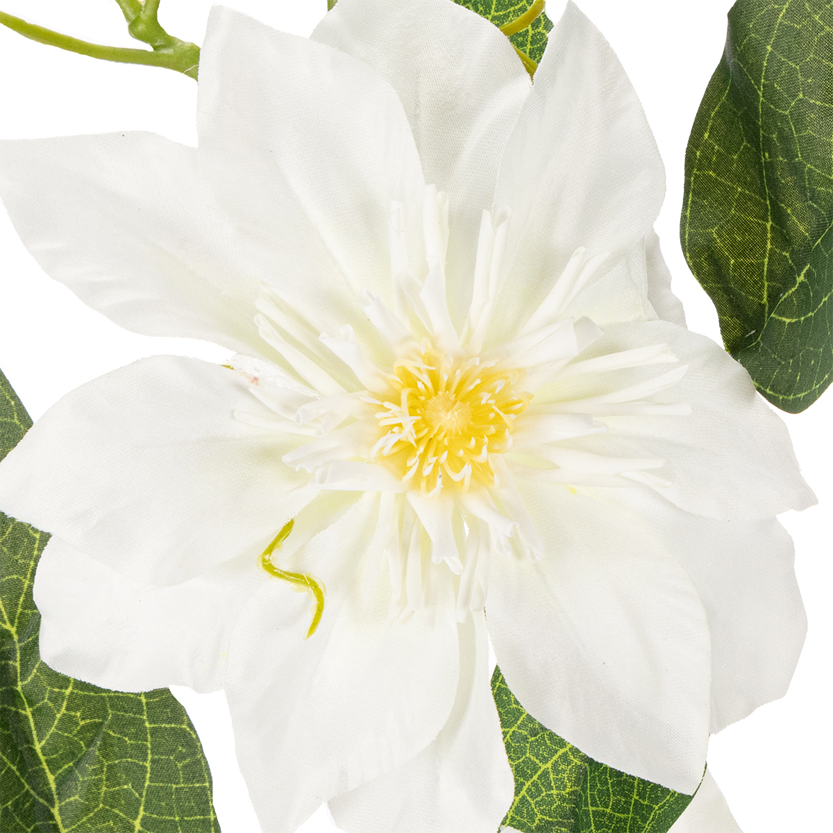 Nasza sztuczna gałązka powojnika w wyjątkowy sposób łączy elegancję i funkcjonalność. Białe kwiaty wykonane są z delikatnego jedwabiu, co nadaje im realistyczną fakturę i delikatny połysk. Harmonijnie uzupełnione zielonymi plastikowymi liśćmi, tworzą cudownie naturalny wygląd, pasujący do niemal każdego stylu wnętrza. Niezależnie od tego, czy jest to minimalistyczny, nowoczesny czy romantyczny styl – ta dekoracyjna gałązka idealnie wpasuje się w wystrój.