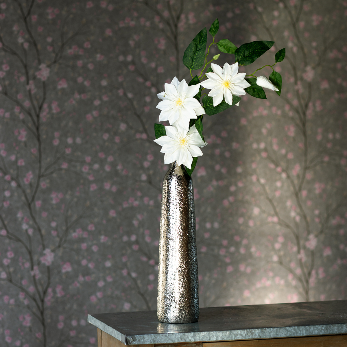 Imponująca długość 81 cm daje swobodę aranżacji gałązki zarówno w wysokich, jak i niskich wazonach. Wazon podłogowy lub stołowy natychmiast stanie się centralnym punktem pomieszczenia. Gałązka powojnika doskonale sprawdzi się w jasnych, przestronnych pomieszczeniach lub jako element dekoracyjny stołów weselnych, sal recepcyjnych czy stylowych aranżacji biurowych. W razie potrzeby można ją również połączyć z innymi przezroczystymi lub białymi kwiatami dekoracyjnymi, tworząc niepowtarzalną kompozycję kwiatową. A może chcesz dodać odrobinę stylu vintage, umieszczając gałązkę w rustykalnych donicach?