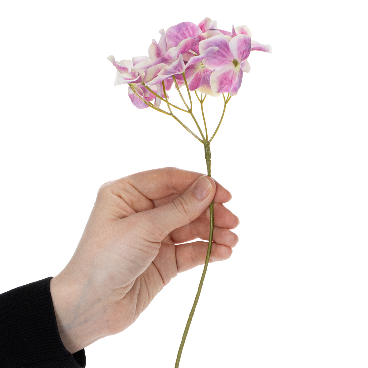 Ta sztuczna hortensja zachwyca pod każdym względem – od zwodniczo realistycznego wyglądu po wysokiej jakości konstrukcję z poliestru i plastiku. Każdy kwiat wygląda tak realistycznie, że niemal czuć zapach prawdziwych kwiatów. Mierząca 110 cm długości i około 40 cm średnicy, elegancko wpasowuje się w każdy wystrój, nie będąc przy tym nachalna. Ciepły, różowy odcień pięknie komponuje się z romantycznymi wnętrzami w stylu vintage czy shabby chic, ale również zachwyca w nowoczesnych i minimalistycznych aranżacjach. Szukasz inspiracji? Połącz naszą hortensję z białymi storczykami lub delikatnymi gałązkami eukaliptusa, aby stworzyć marzycielską aranżację stołu. Możesz też umieścić gałązki pojedynczo w prostych szklanych wazonach, aby dodać odrobinę elegancji komodom i parapetom.