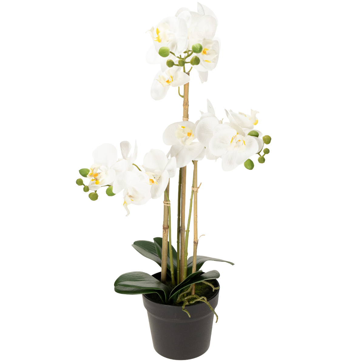 Sztuczna orchidea w doniczce, która stworzy harmonijną atmosferę, biała, 60 cm