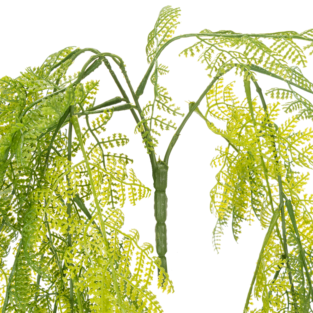 Wykonana z wysokiej jakości, odpornego na promieniowanie UV i trwałego tworzywa sztucznego, ta sztuczna paproć zachowuje swój żywy, zielony kolor nawet w zmiennych warunkach oświetleniowych i temperaturach. Dzięki zachodzącym na siebie liściom, roślina idealnie komponuje się z nowoczesnym, skandynawskim lub naturalnym stylem wnętrz. Połącz ją ze stylowymi wazonami lub innymi sztucznymi roślinami, aby nadać swoim wnętrzom osobisty charakter.